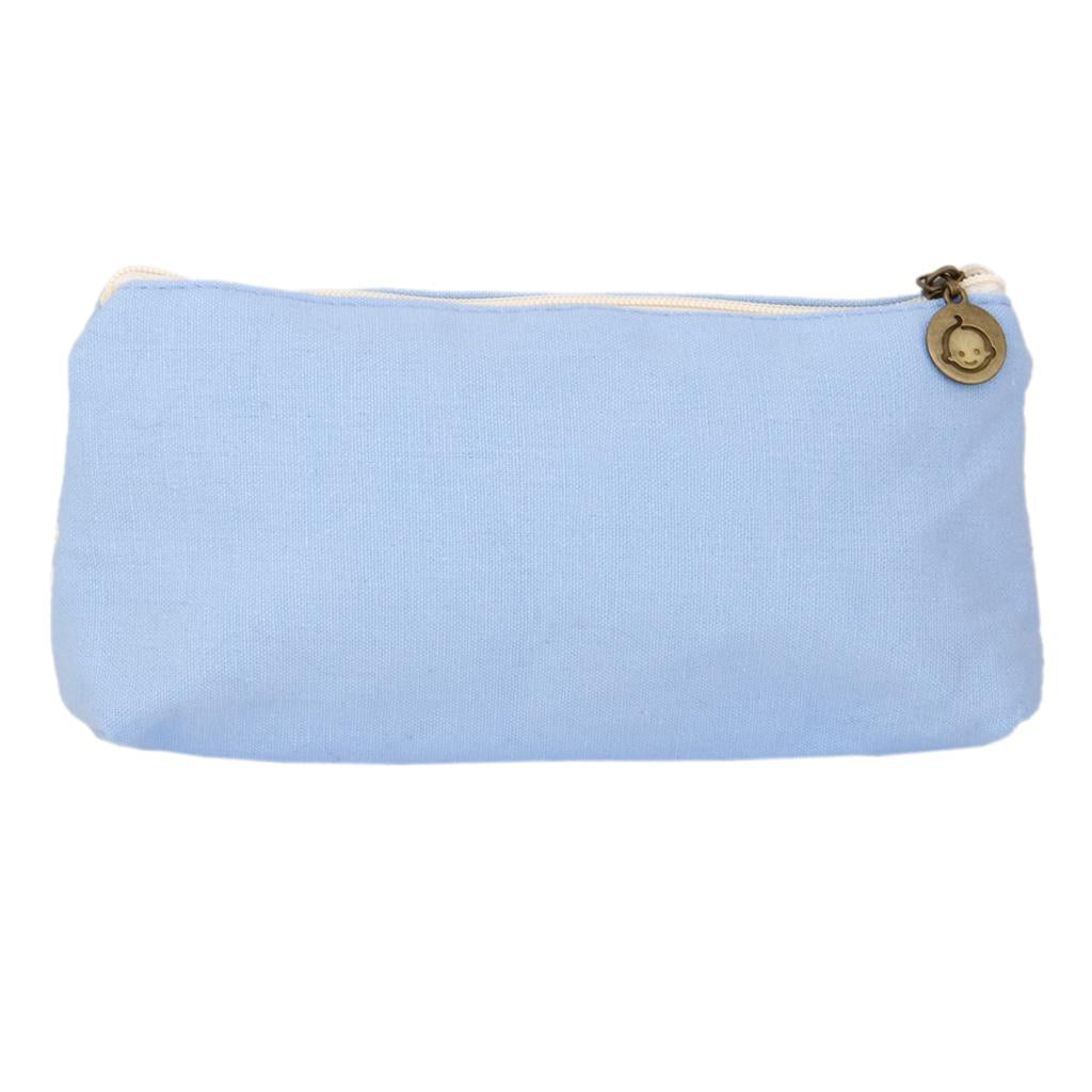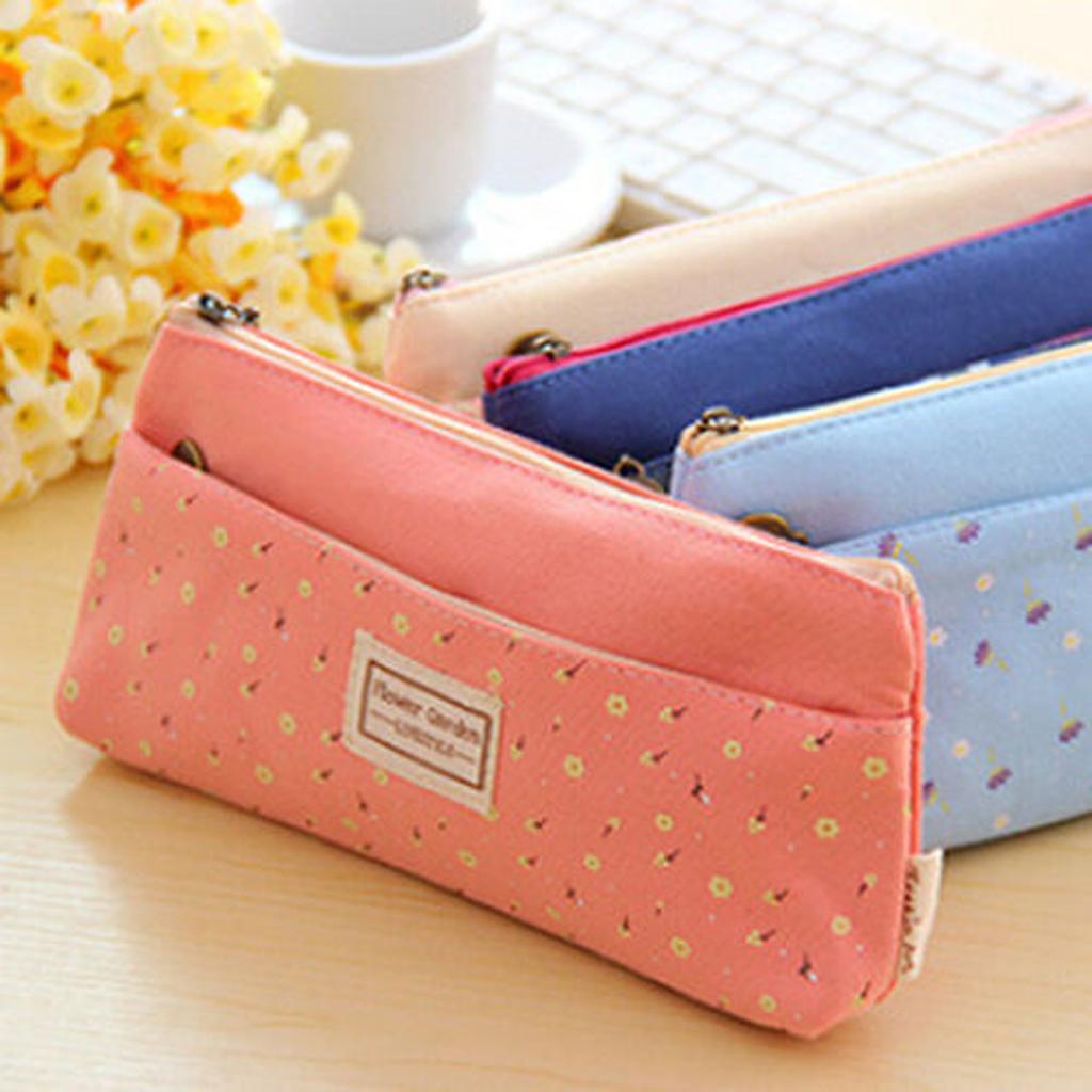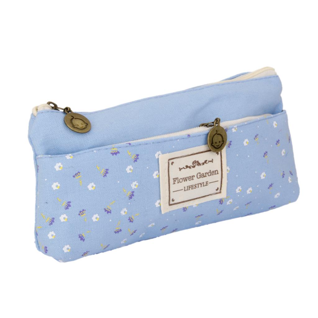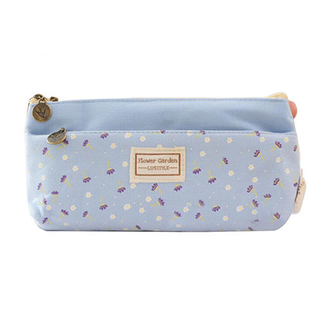 Flower Canvas Pencil Case Cosmetic Makeup Coin Pouch Zipper Bag Purse Blue