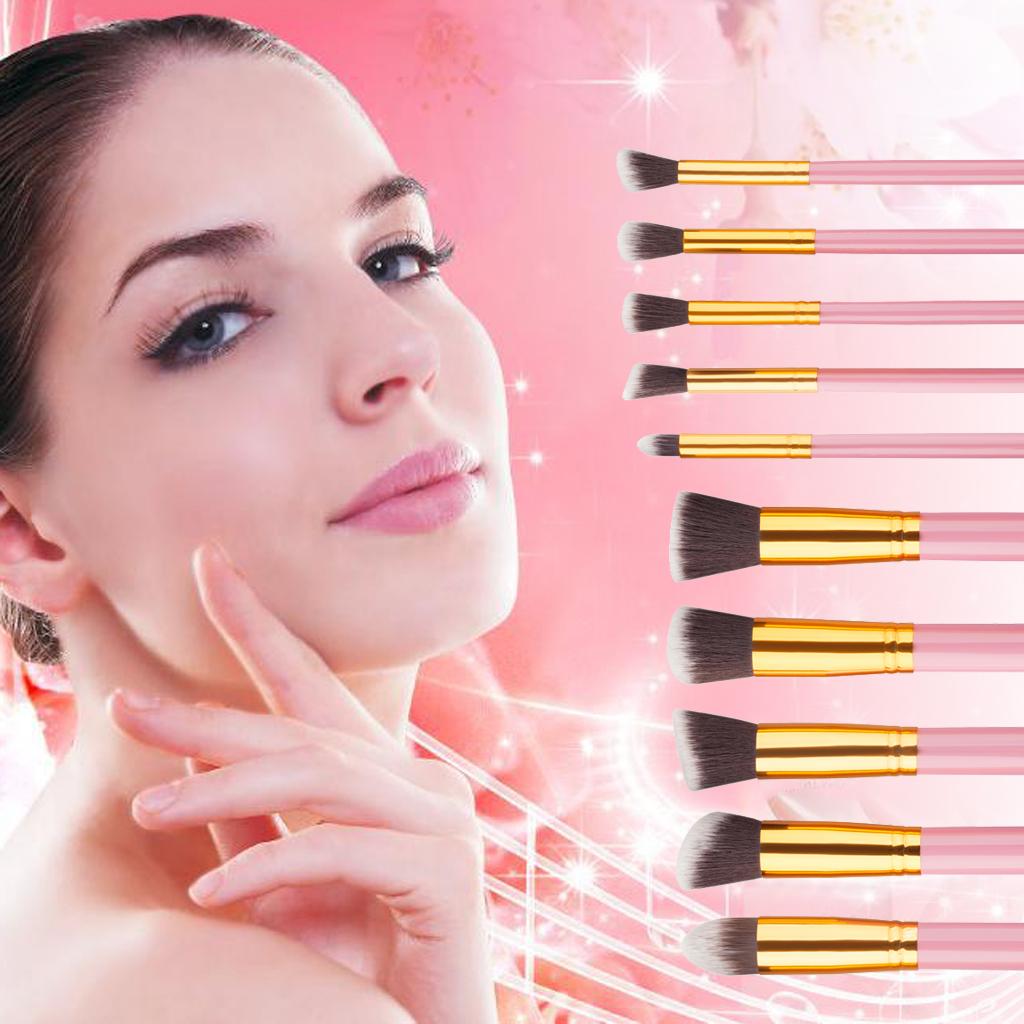 Home Professionals Use Face Eye Makeup Applicator Concealer Blusher Contour Cosmetic Make Up Brushes 10PCS + Powder Puff