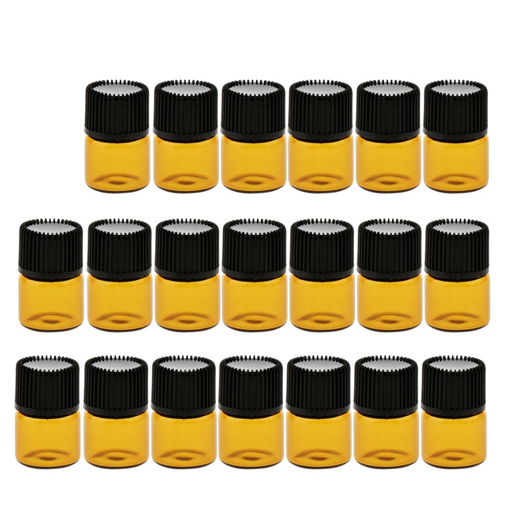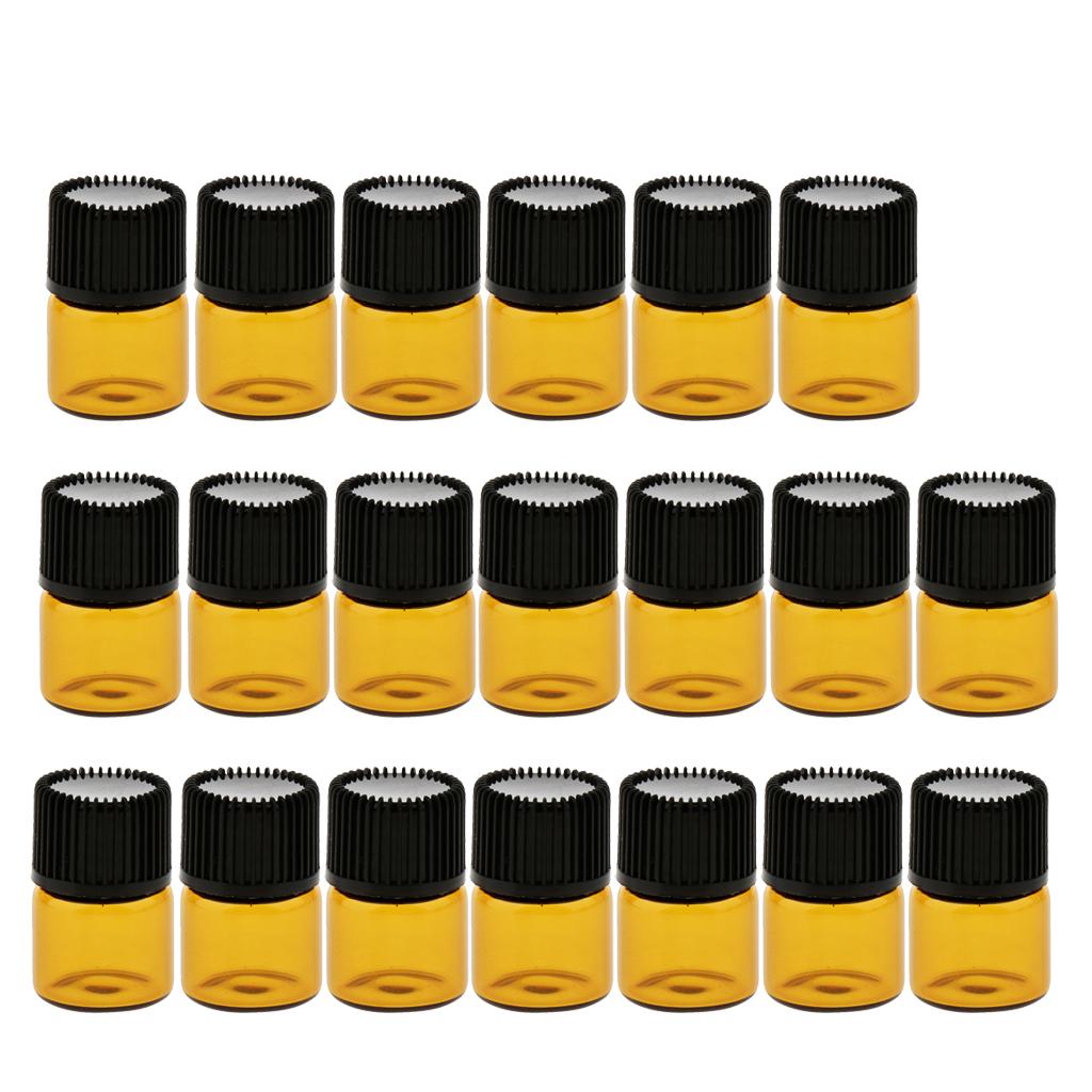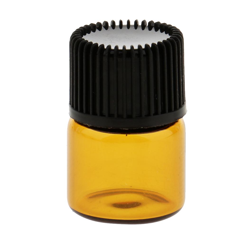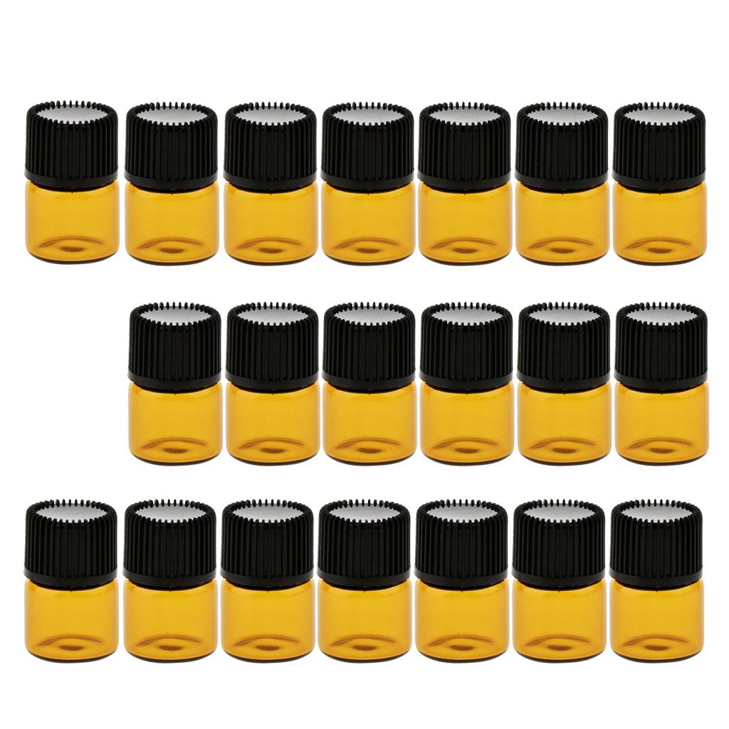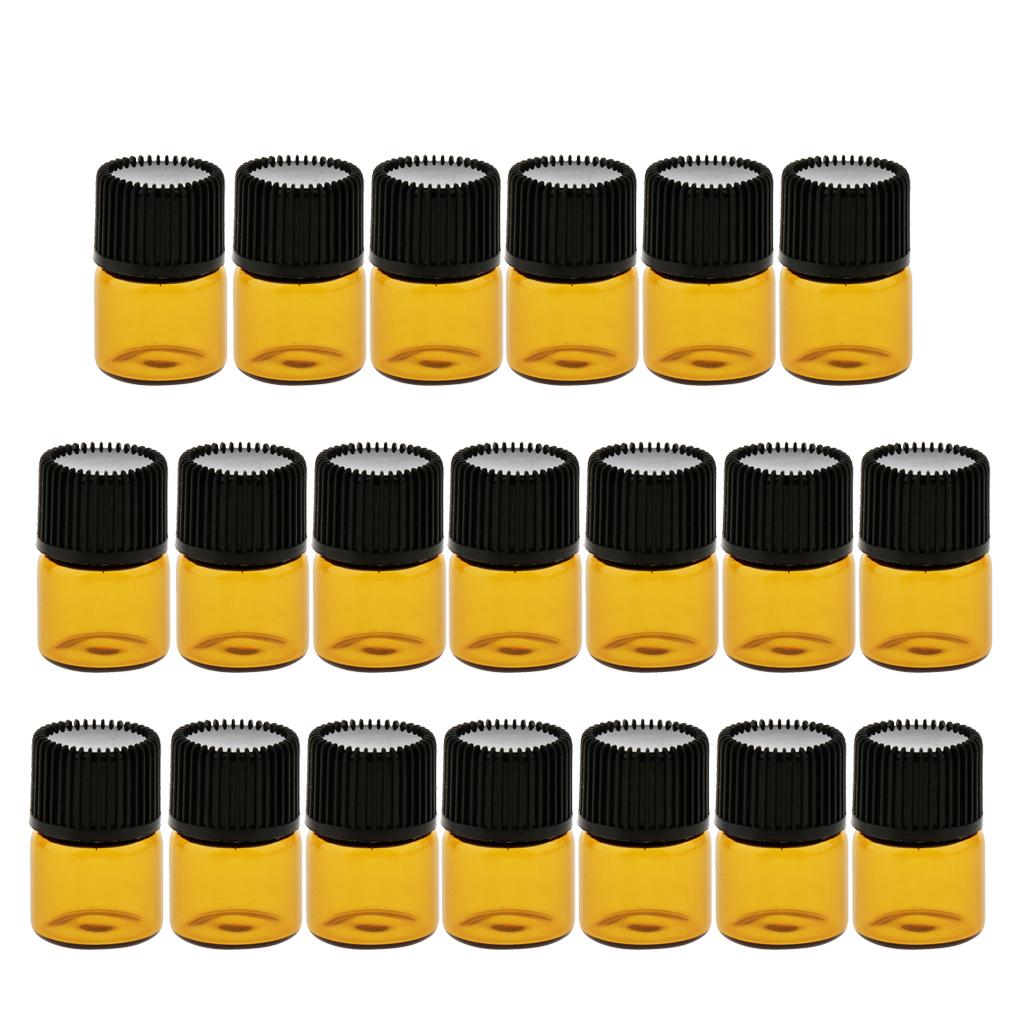 Lots 20pcs Empty Clear Glass Dram Bottles Vials With Black Screw Cap Brown 1ml