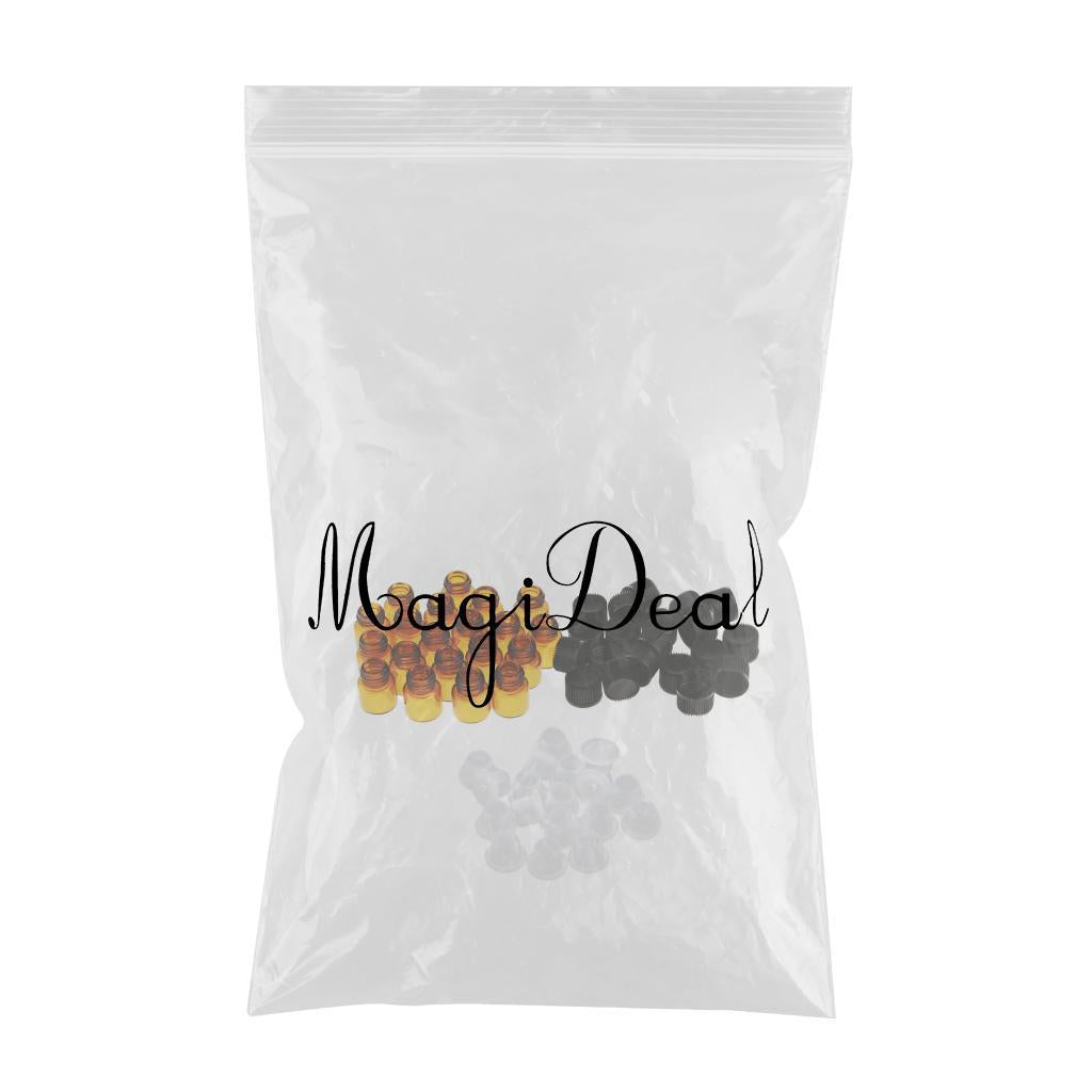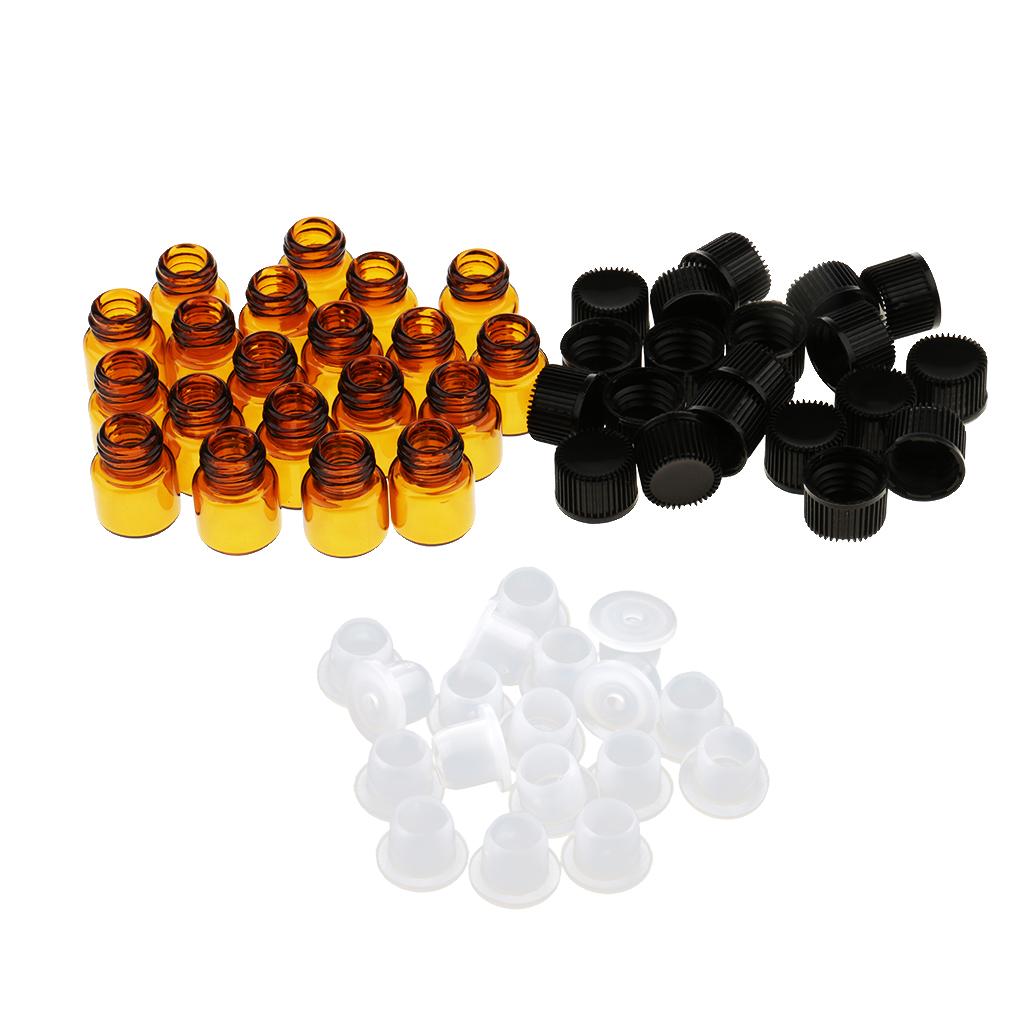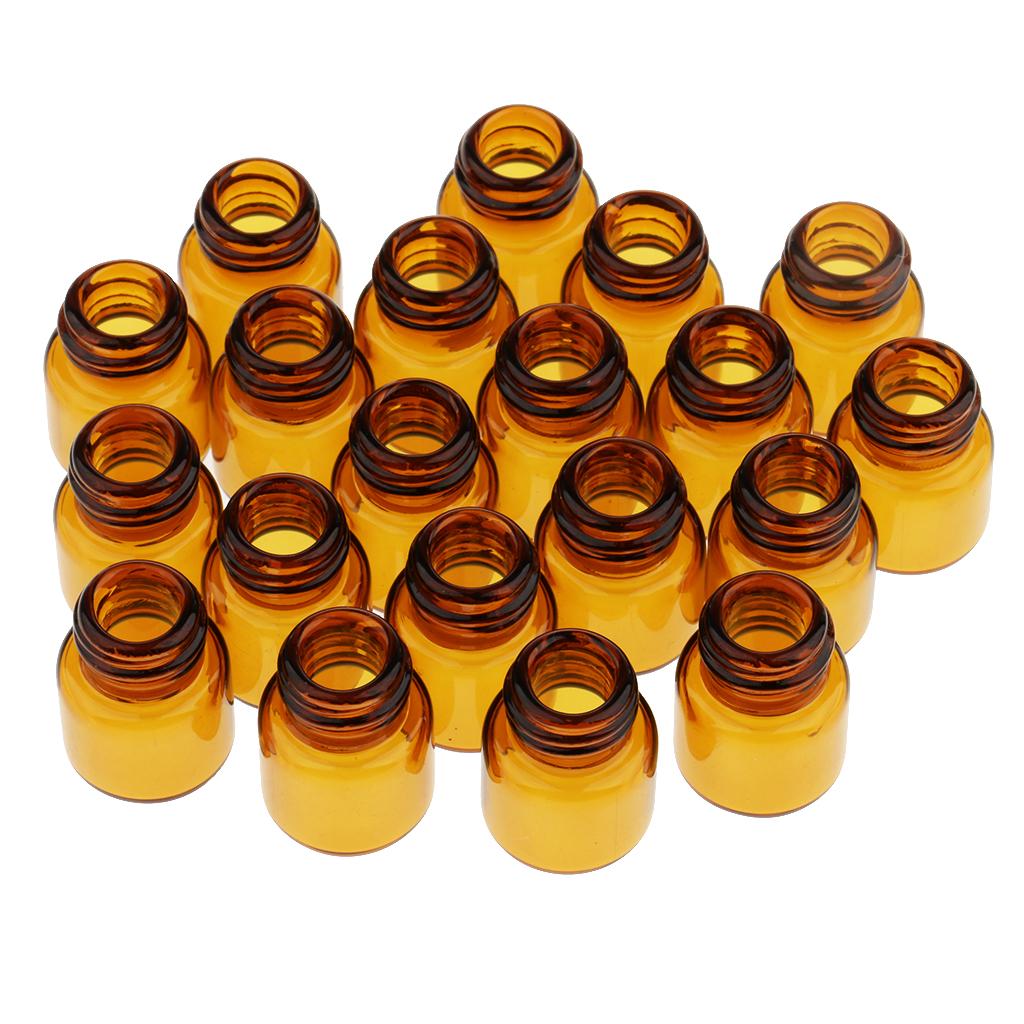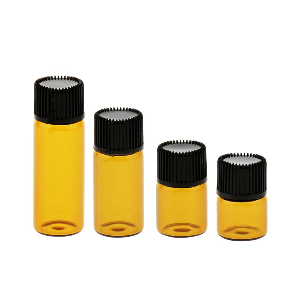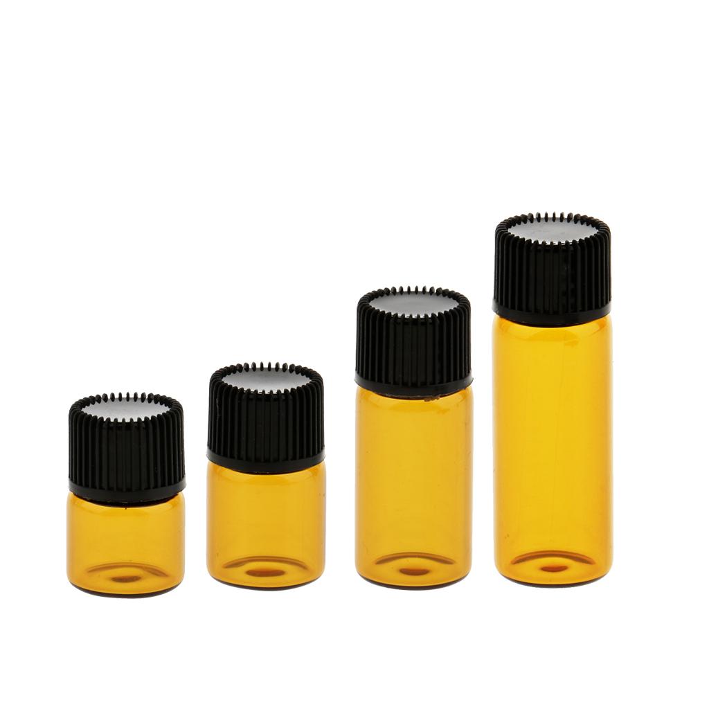 Lots 20pcs Empty Clear Glass Dram Bottles Vials With Black Screw Cap Brown 1ml
