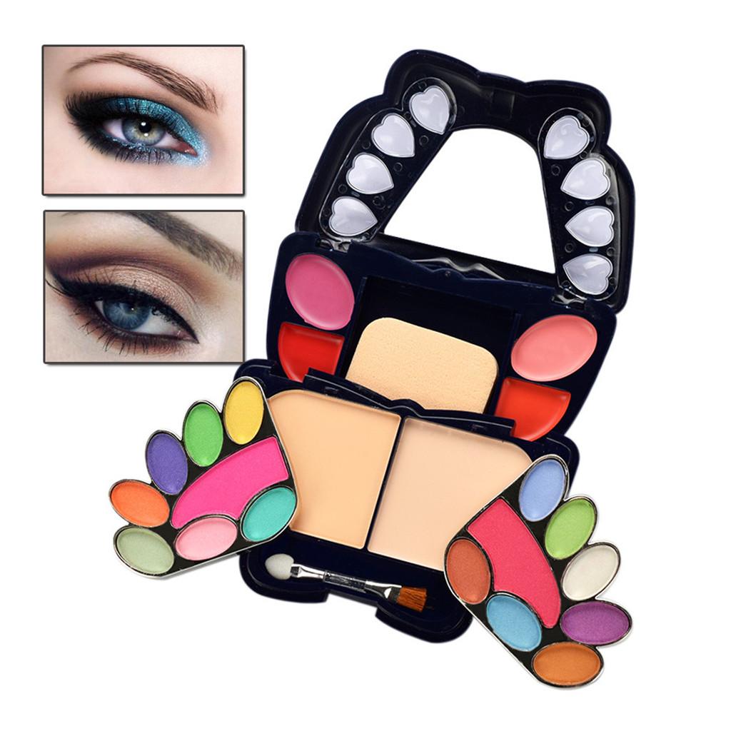 Makeup Eyeshadow Lip Gloss Concealer Powder Palette Brushes Kit Pink-Gold