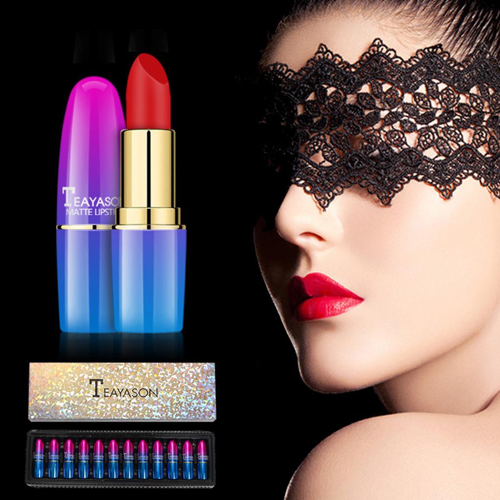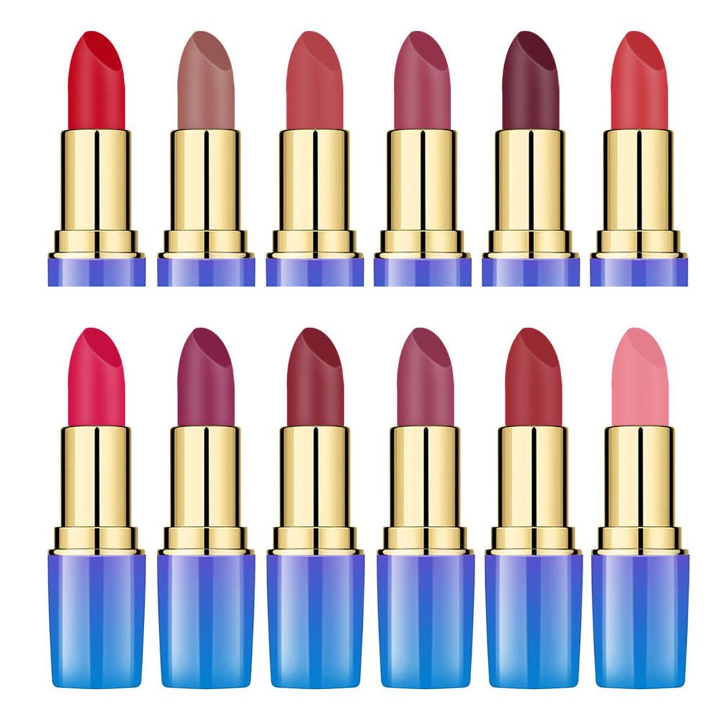 12 Shades Nutritious Lipsticks Red Color Collection.