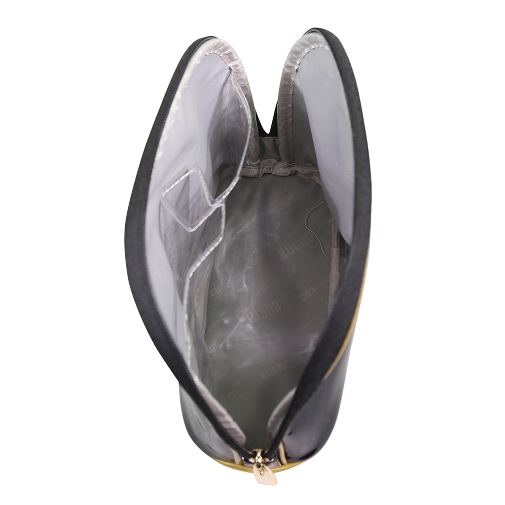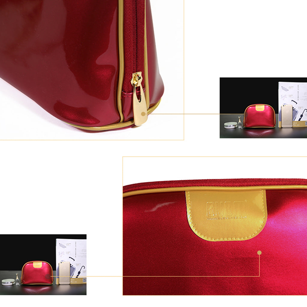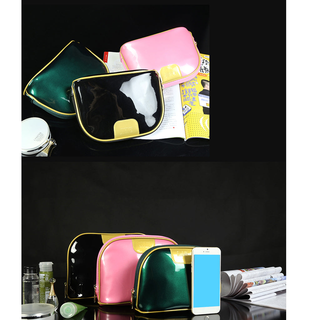 This comestic storage bag is made of PU leather, provides light weight, soft and waterproof function