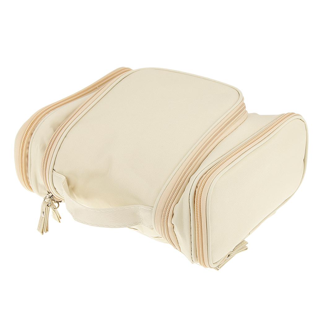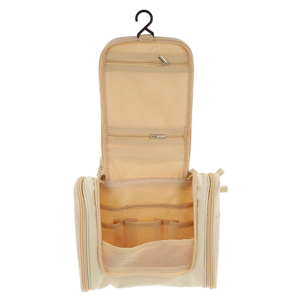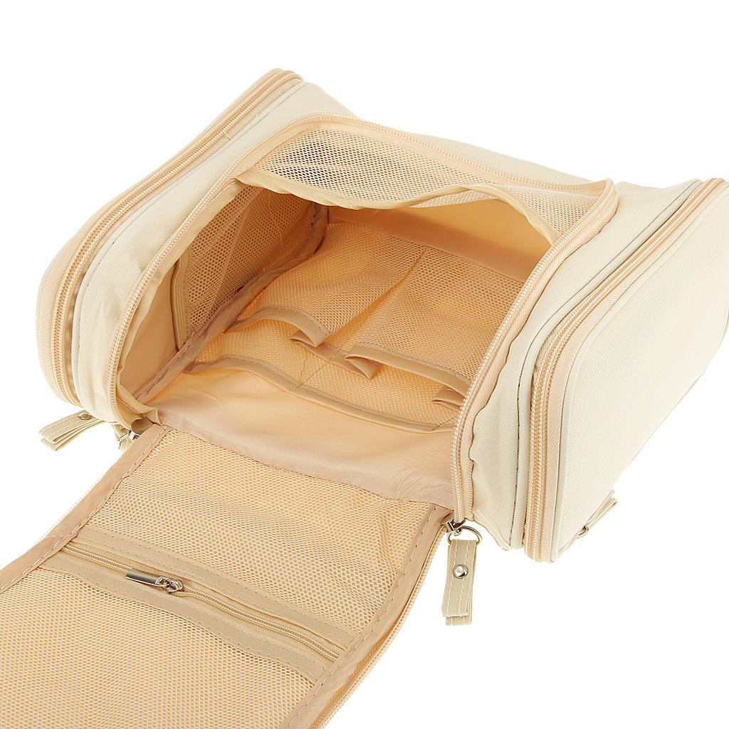 Multifunction Travel Toiletry Wash Cosmetic Bag Makeup Hanging Storage Beige
