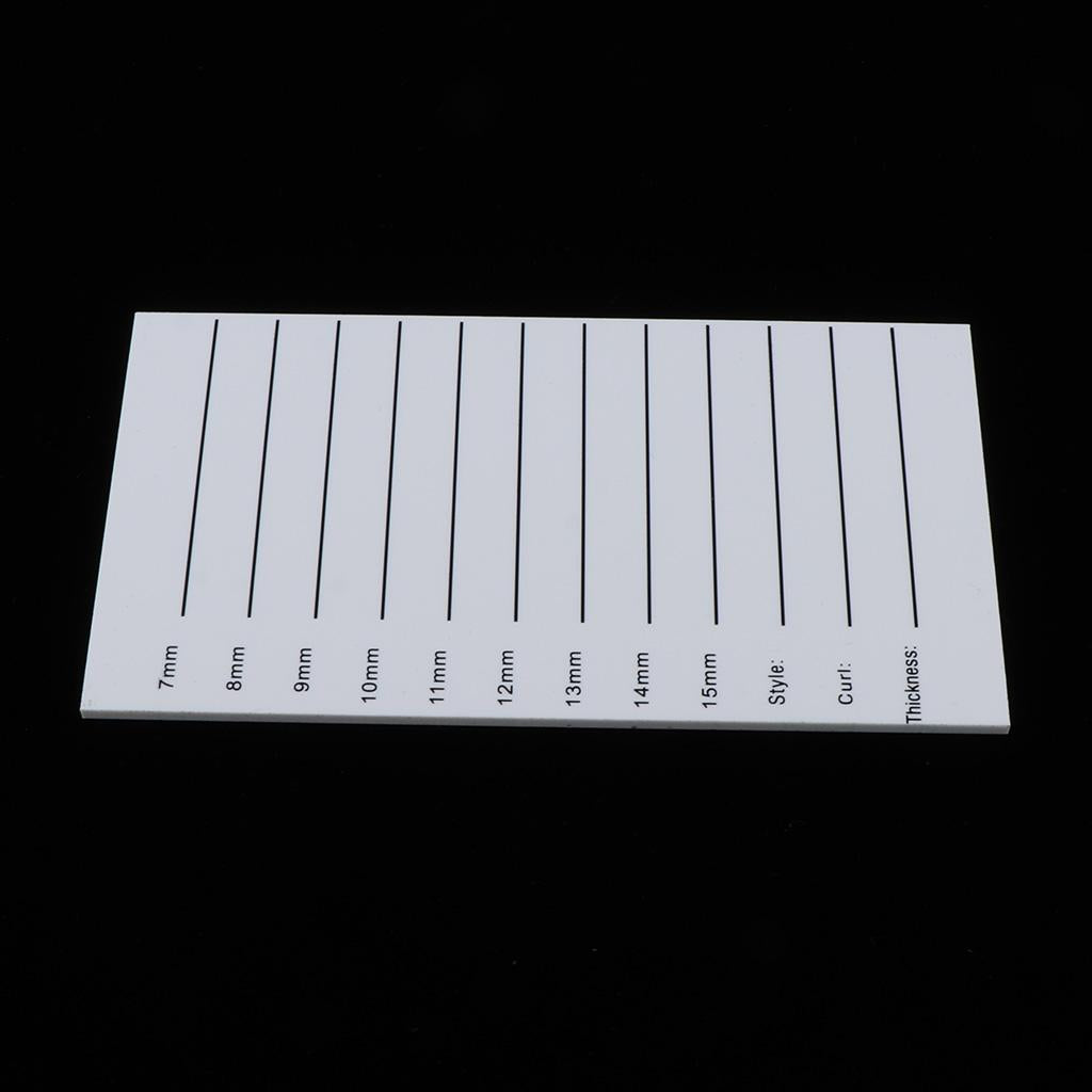 The printed lines show the length of the lashes used most frequently to allow quick and easy procedures.