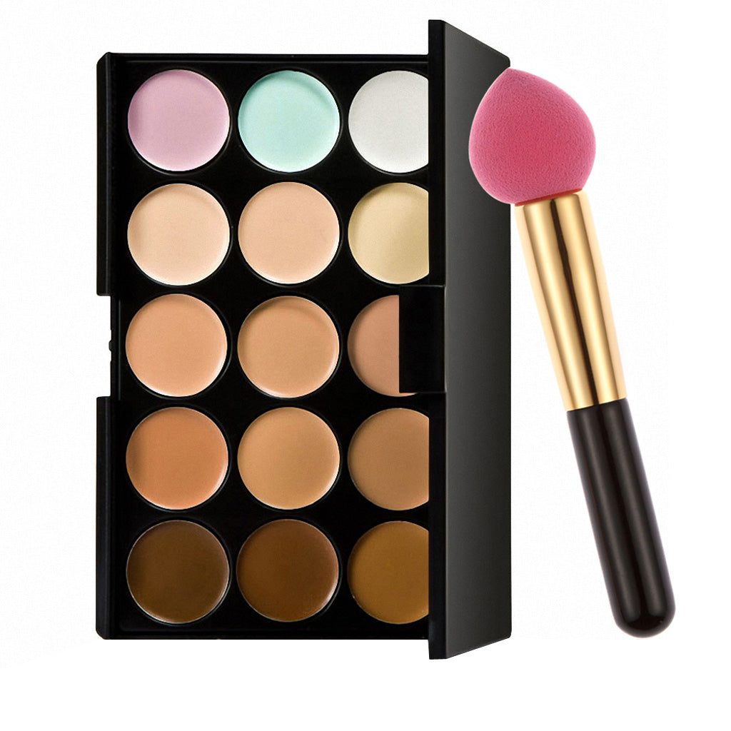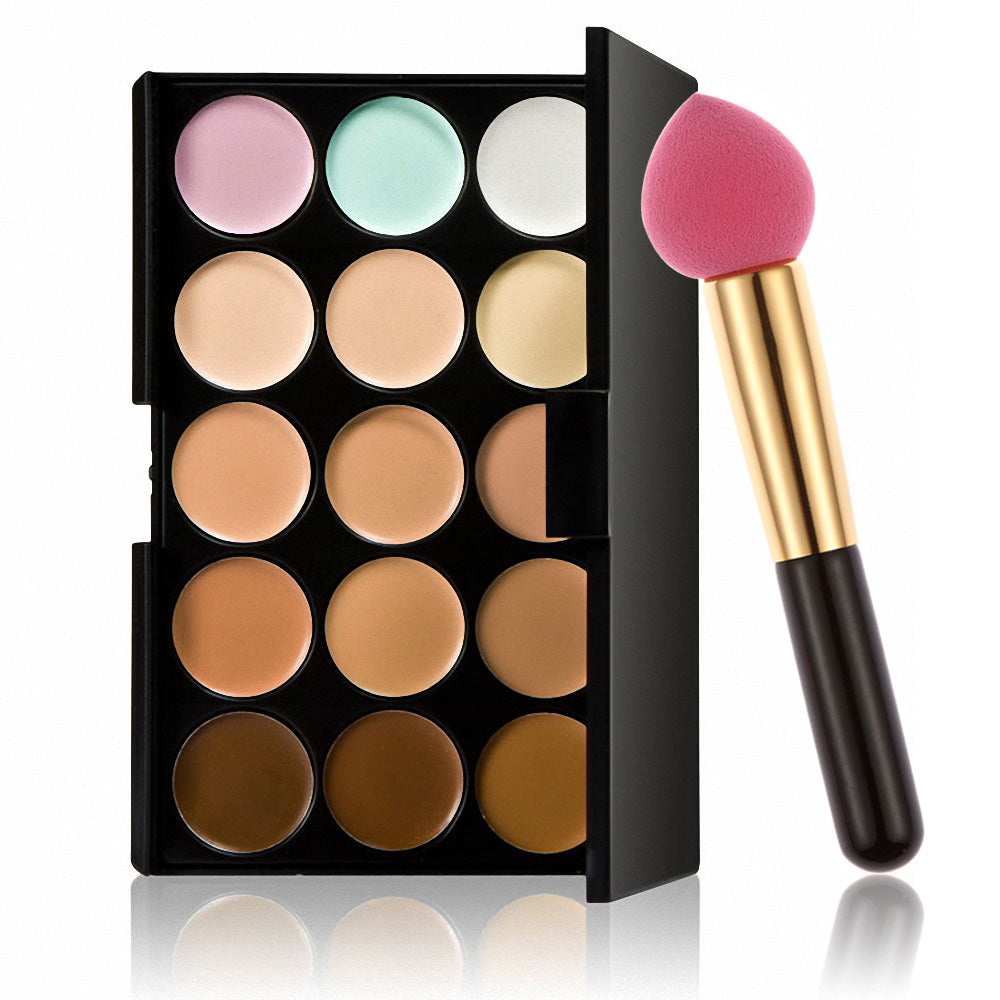 Pro 15 Colors Contour Face Cream Makeup Concealer Palette and Powder Brush
