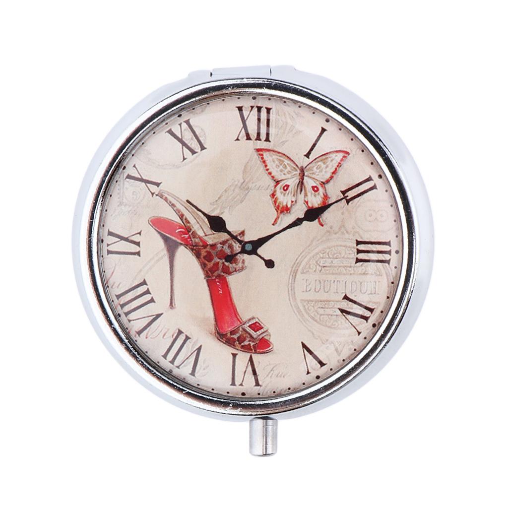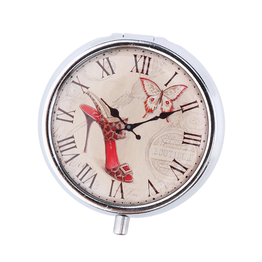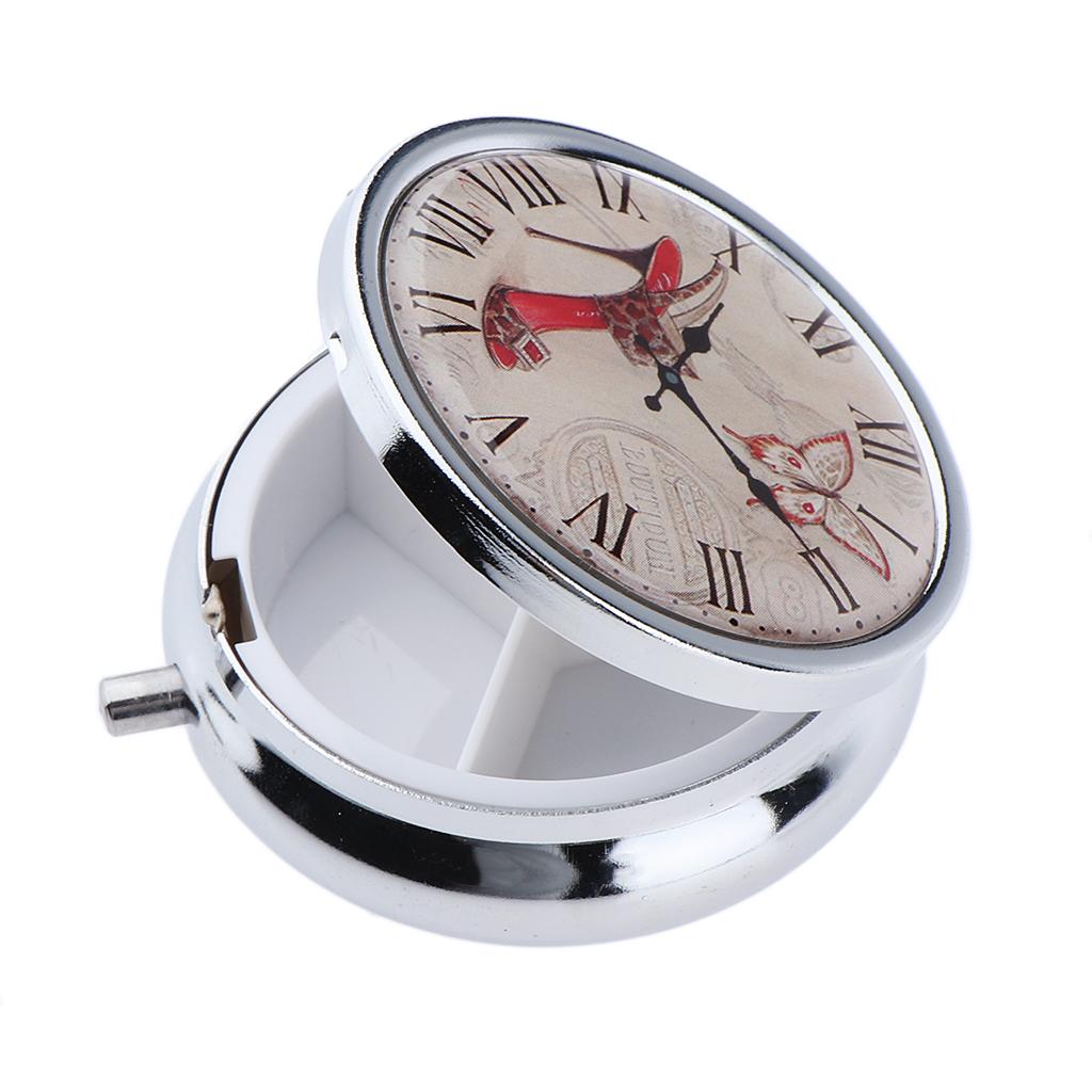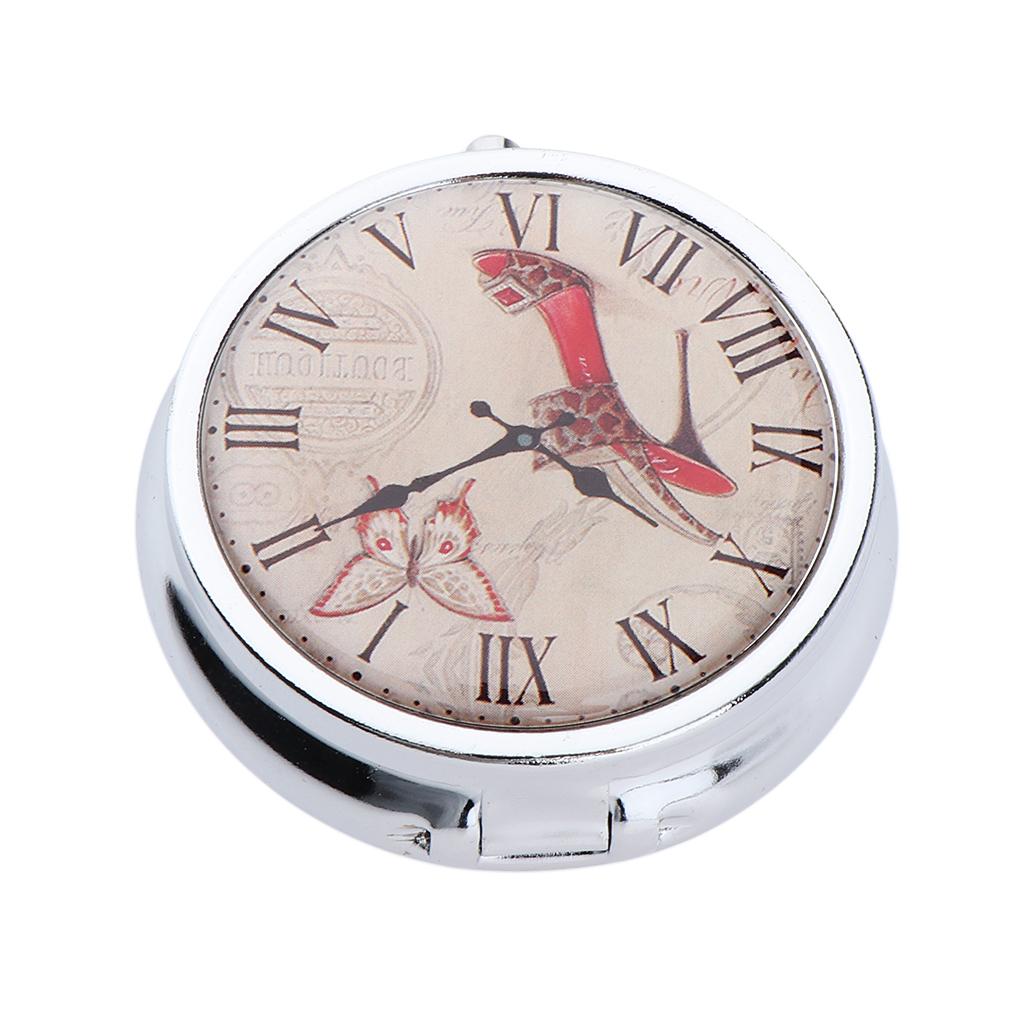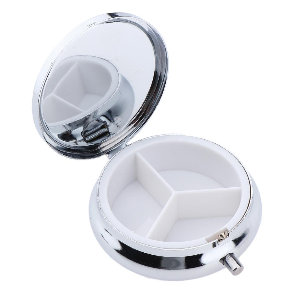 Lovely Cute Embossing Round 3 Grids Small Pill Box with Mirror.