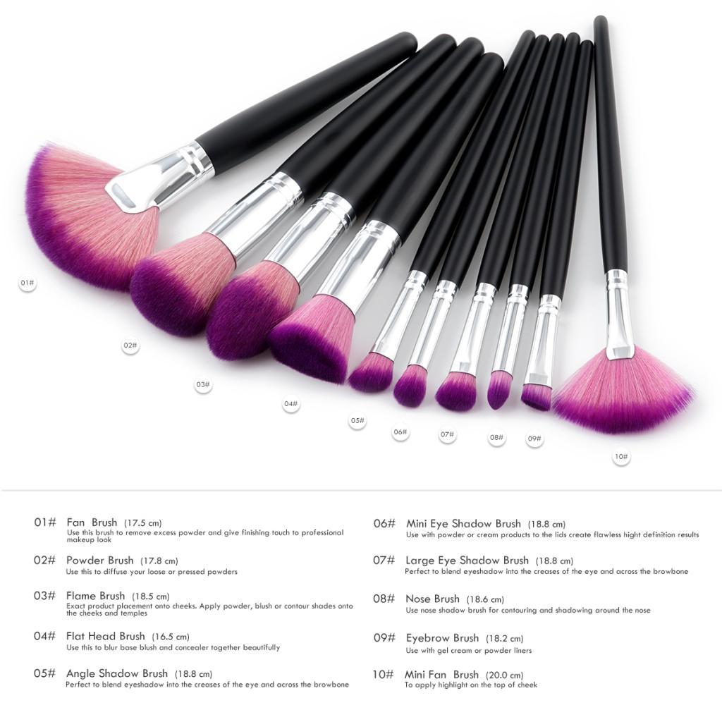 Set of 10 Professional Kabuki Women Makeup Brushes Set for Facial Nose Eyes Lip Powder Cream Blending Blush Comestics