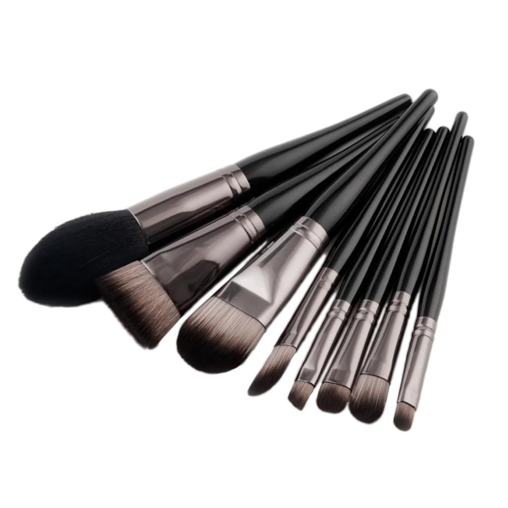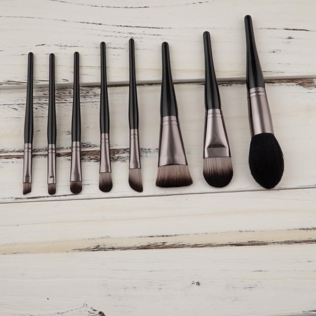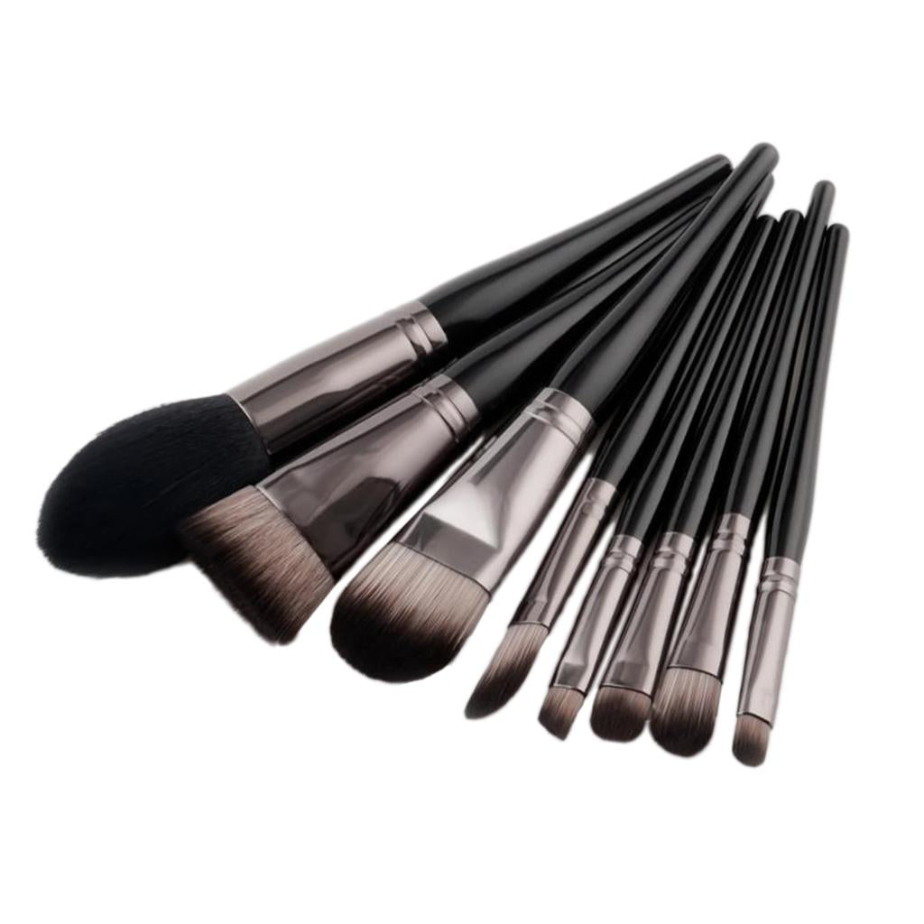 Set of 8 Pieces Black Facial Eyes Foundation Powder Cream Blush Contour Concealer Makeup Brushes Beauty Comestic Tools