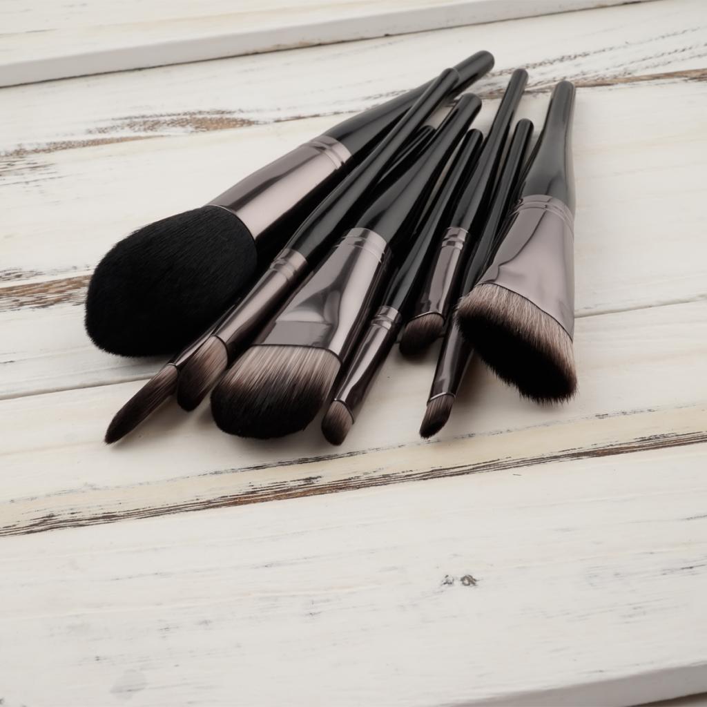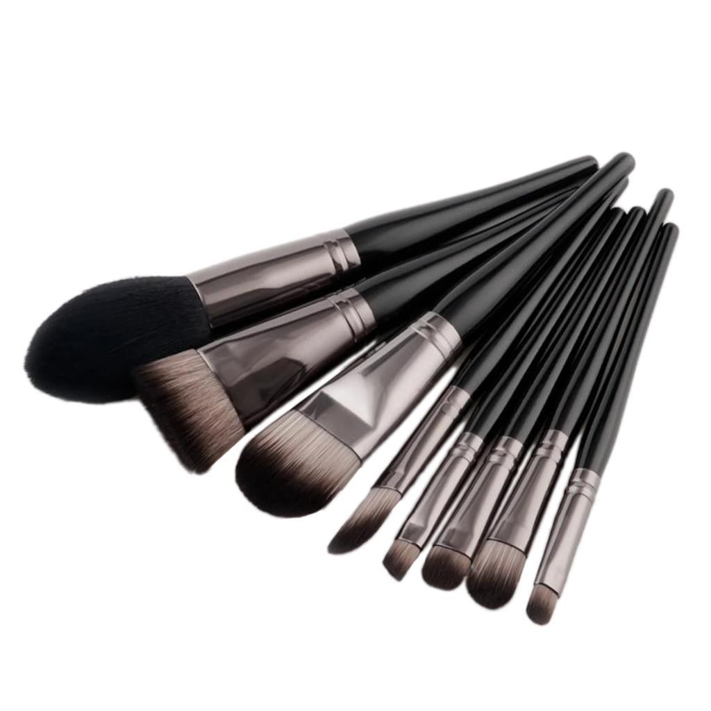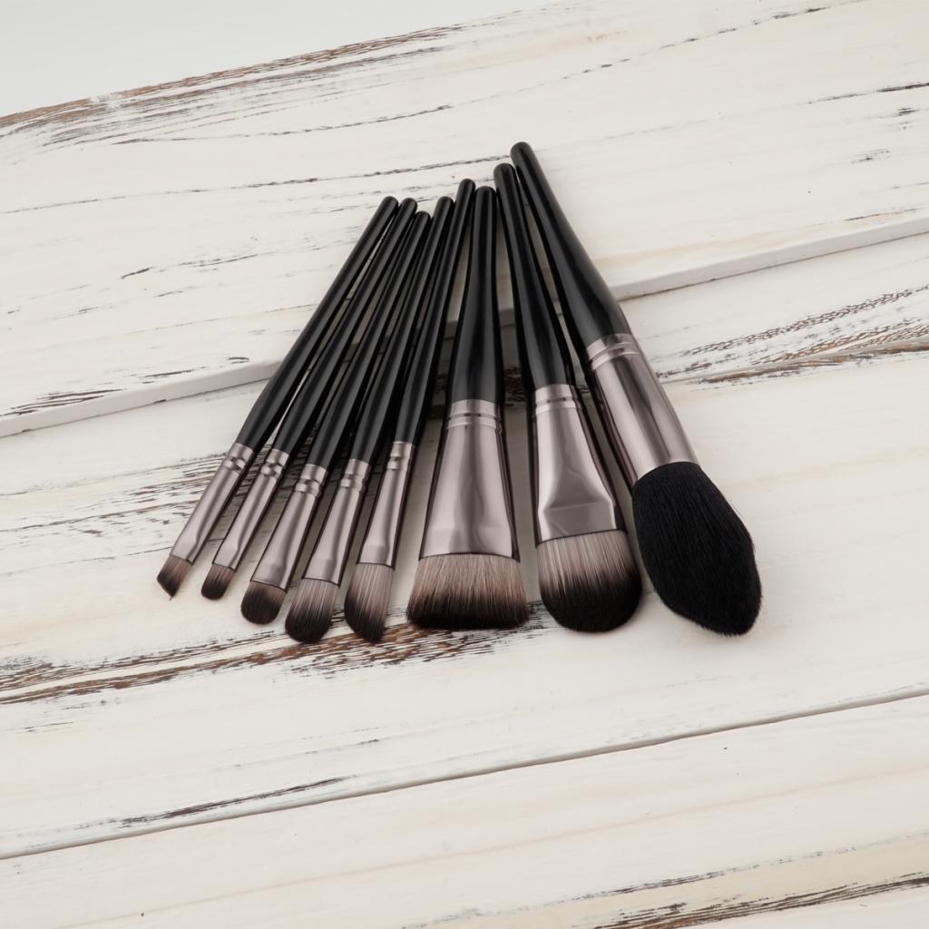 Set of 8 Pieces Black Facial Eyes Foundation Powder Cream Blush Contour Concealer Makeup Brushes Beauty Comestic Tools