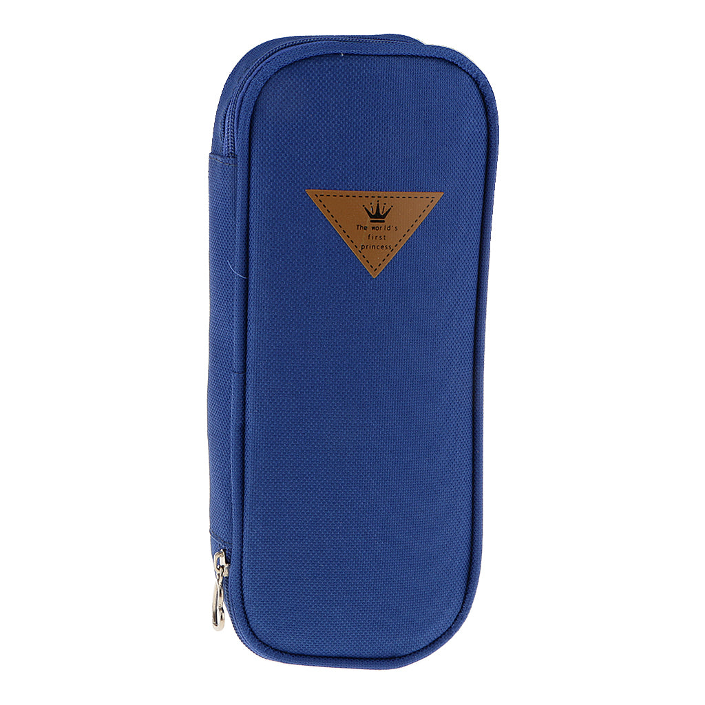 Students Pen Pencil Box Womens Makeup Cosmetic Pouch Bag Crown Dark Blue