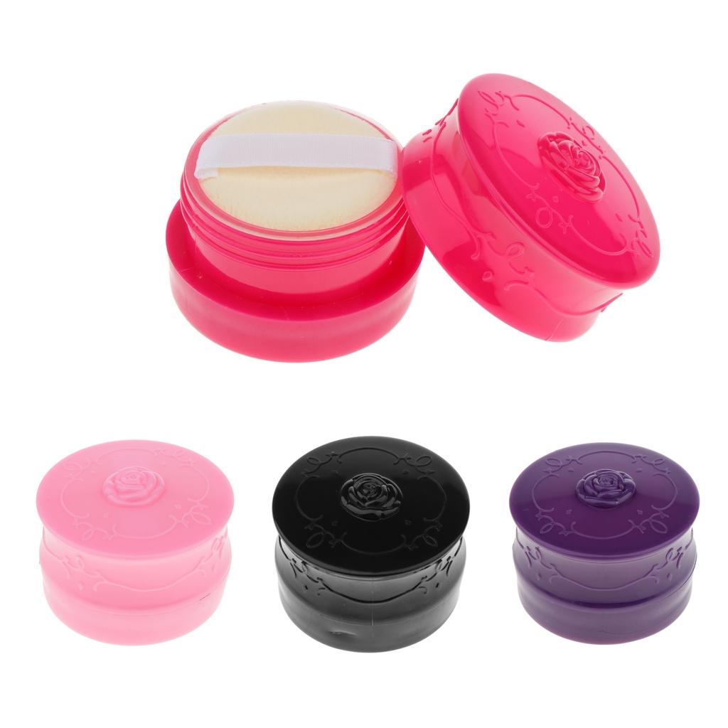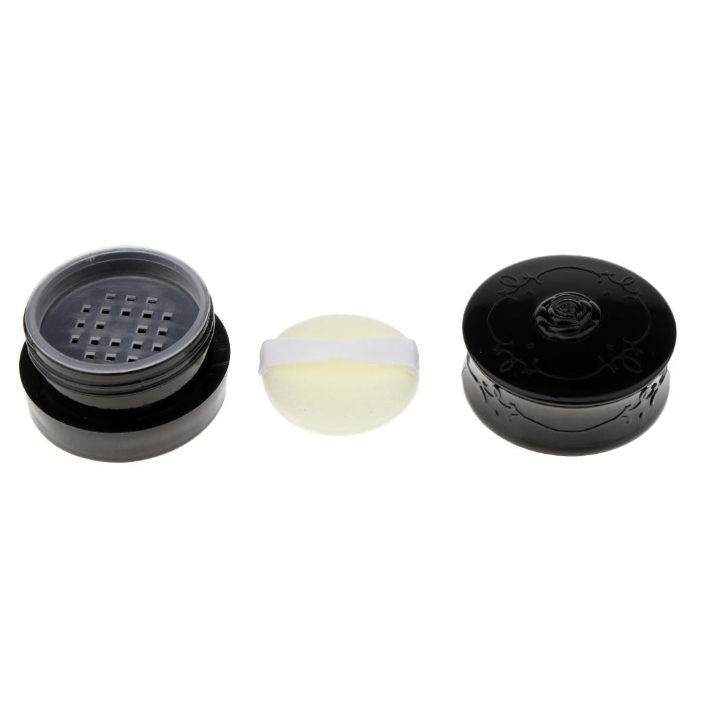 Travel Empty Makeup Loose Powder Container Case with Puff Sifter Black