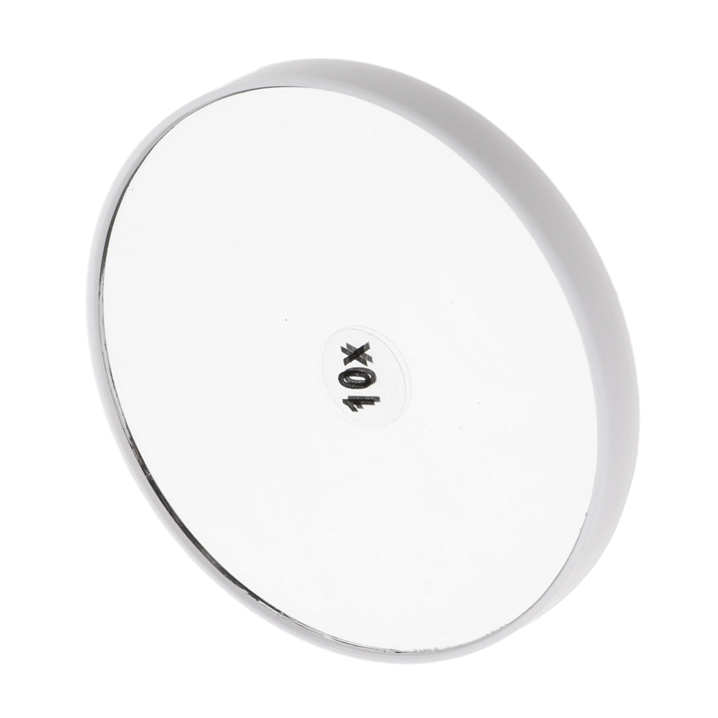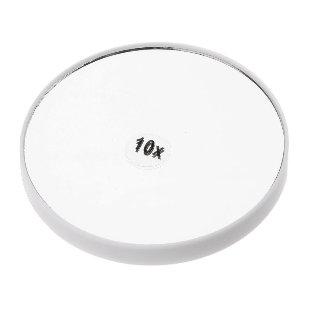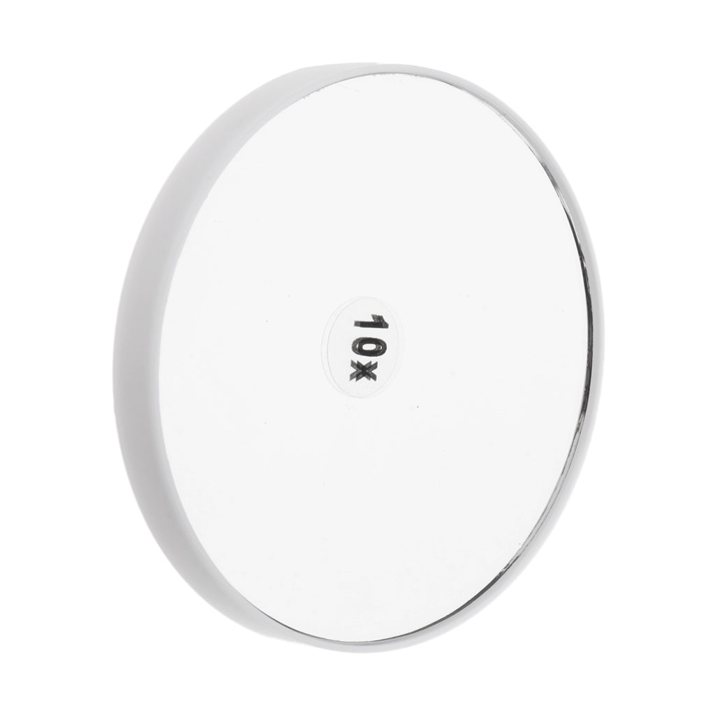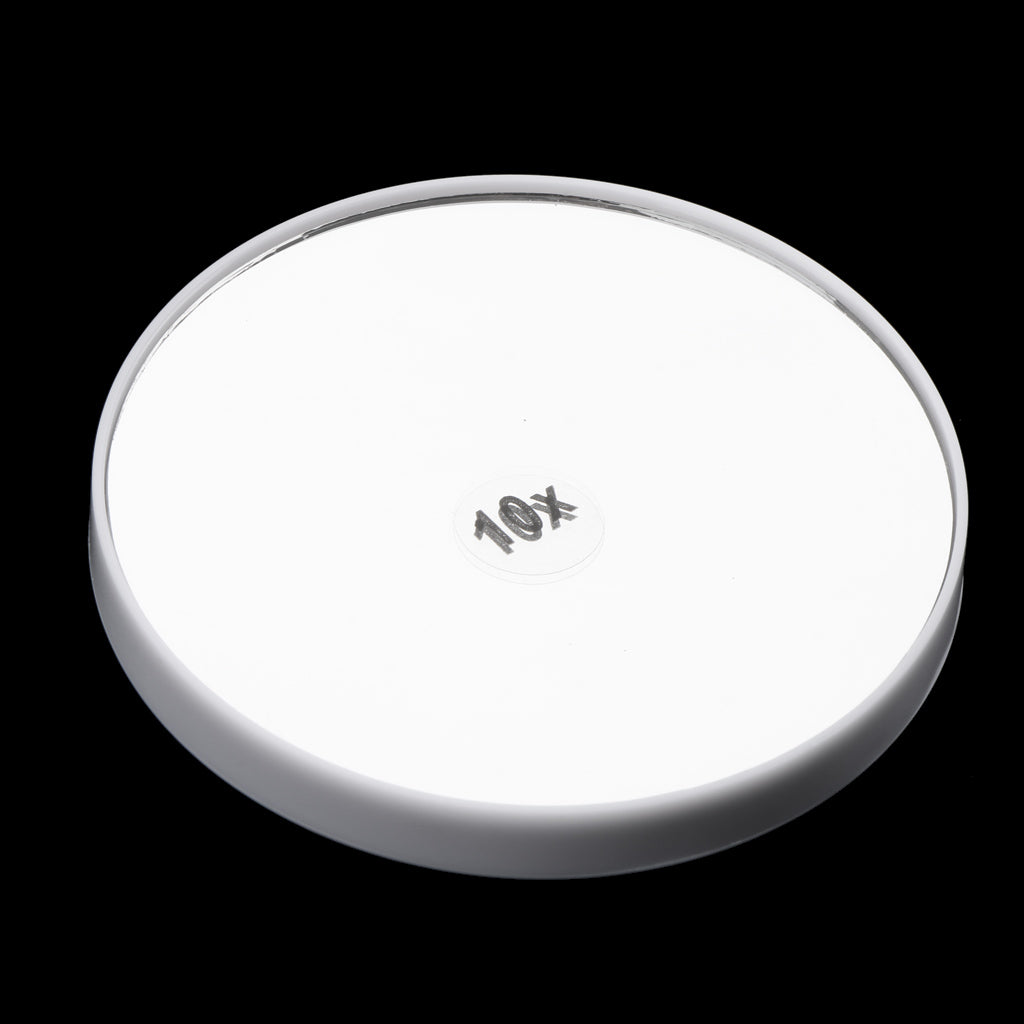 Single-sided cosmetic makeup mirror with 10x magnification.