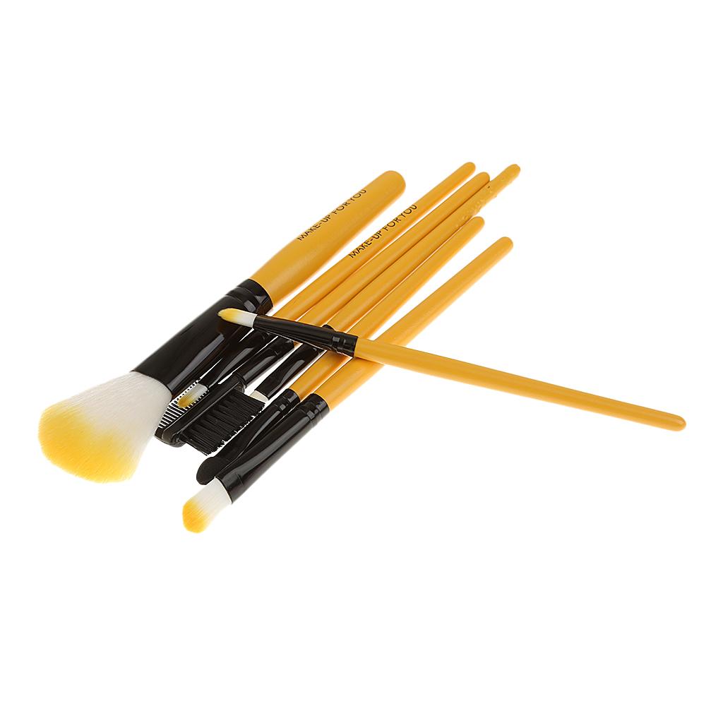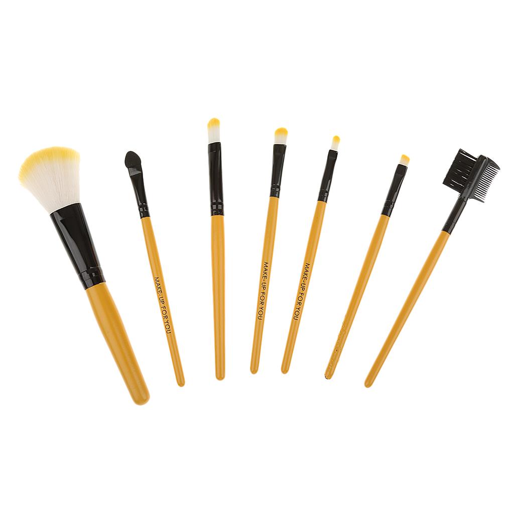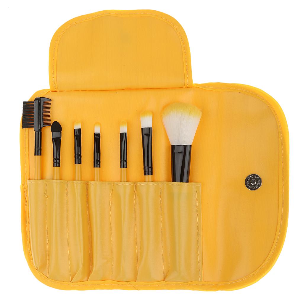 Women Pro Face Makeup Cosmetic Brush Tools Eyelash Comb Blush Eyeshadow Lipstick Applicator Brush 7Pcs/Set + Pouch Bag Case Yellow