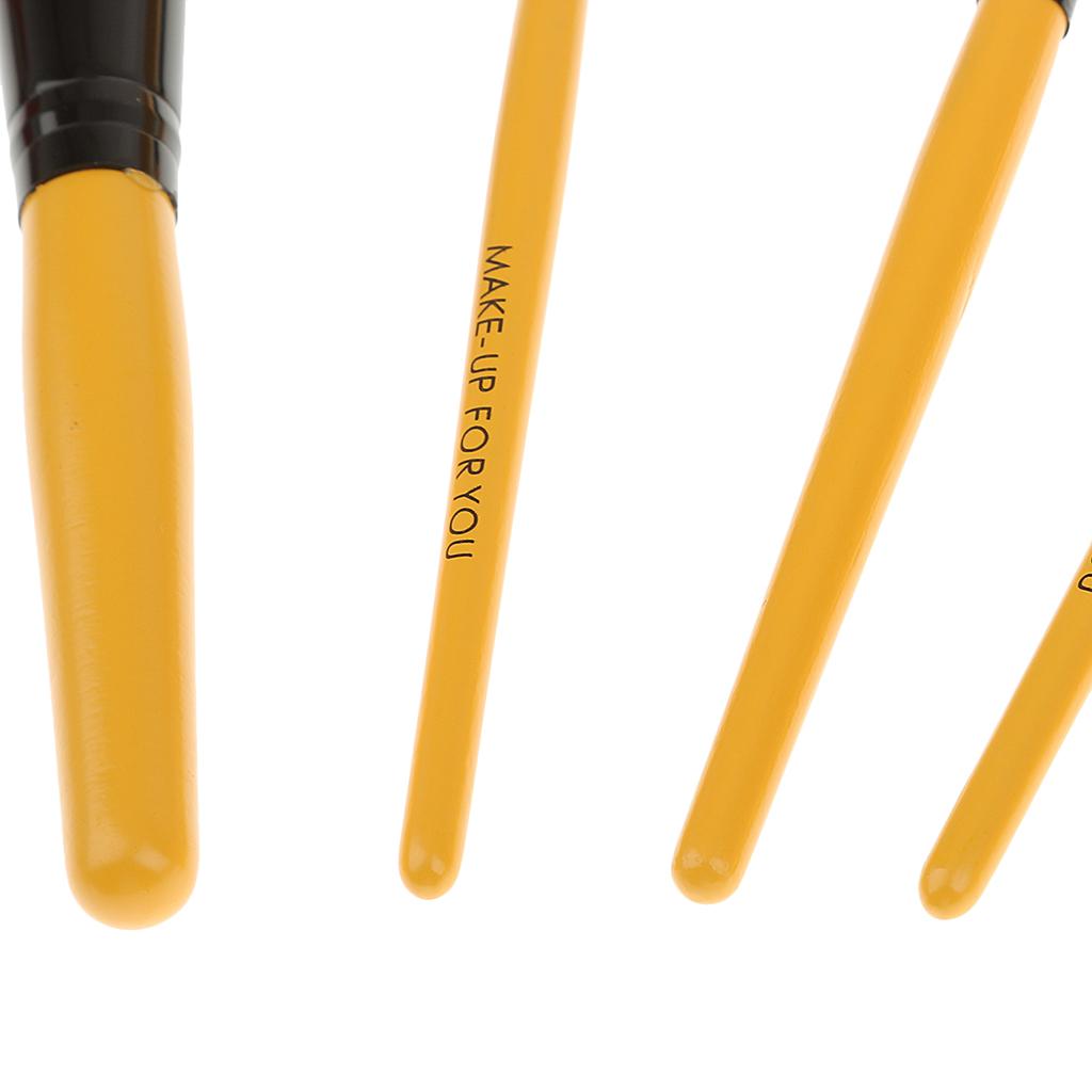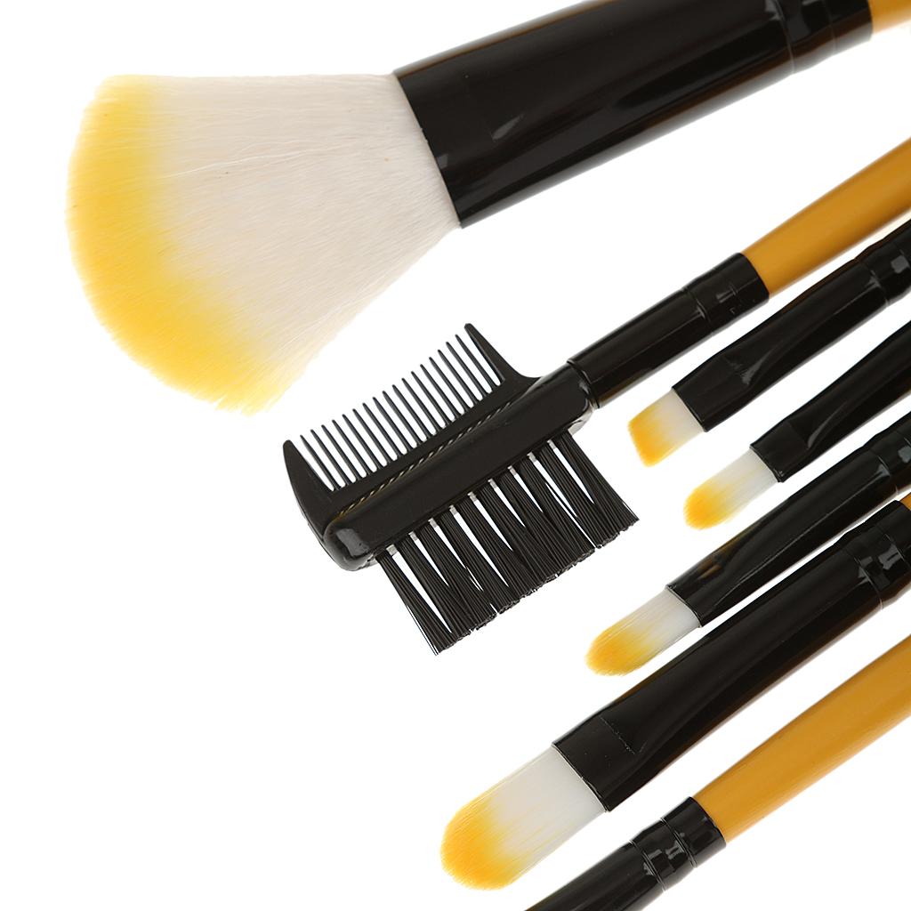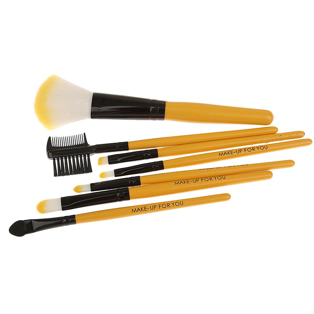 Women Pro Face Makeup Cosmetic Brush Tools Eyelash Comb Blush Eyeshadow Lipstick Applicator Brush 7Pcs/Set + Pouch Bag Case Yellow