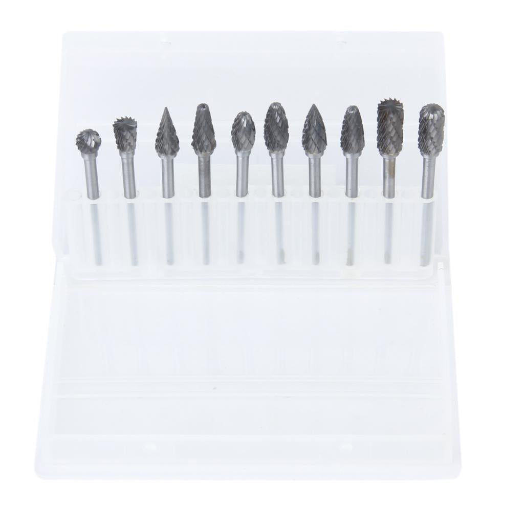 10pcs assorted carbide burrs are preferred for accurate metal removal when shaping, leveling, or porting cast iron, steel, and other nonmetal materials. These carbide burrs come with approx. 6mm head diameter and 3mm shank.