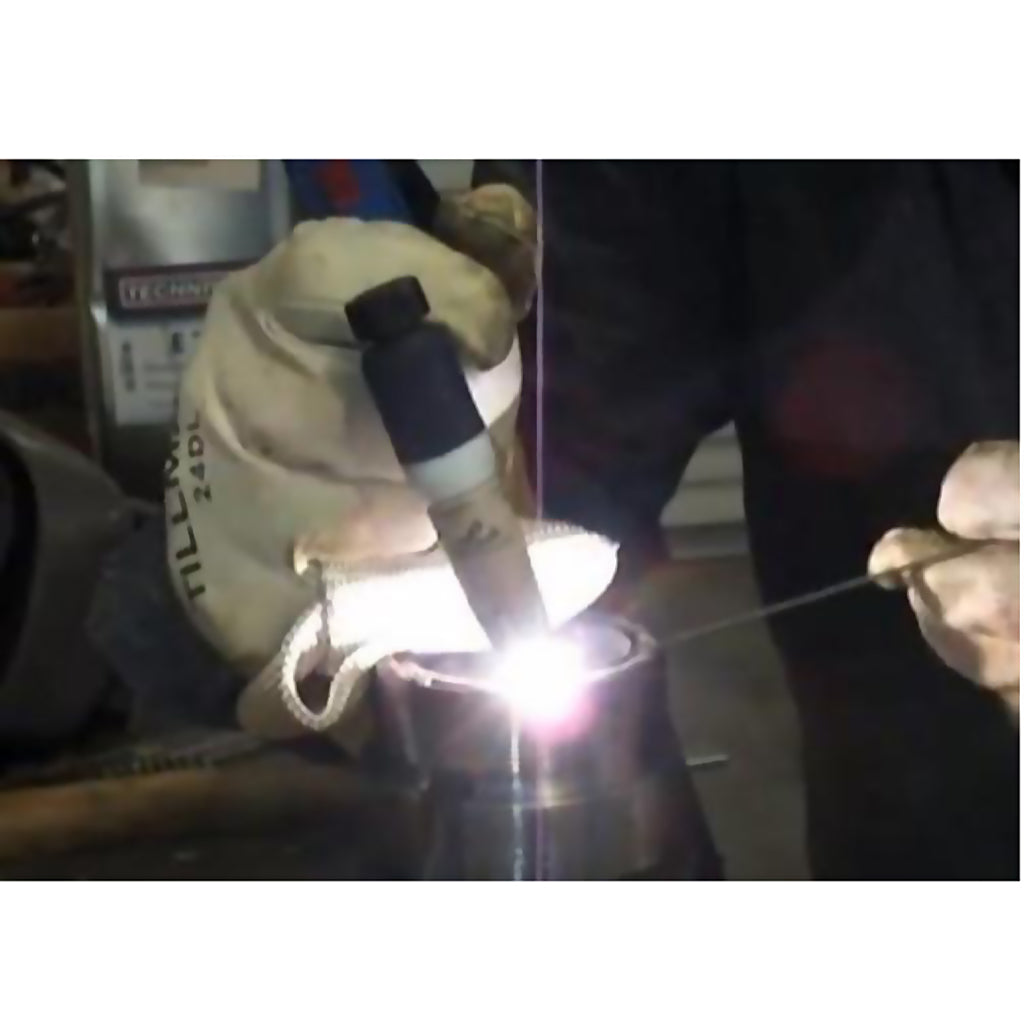 Just slip the TIG Finger over your TIG glove and prop right next to the weld.