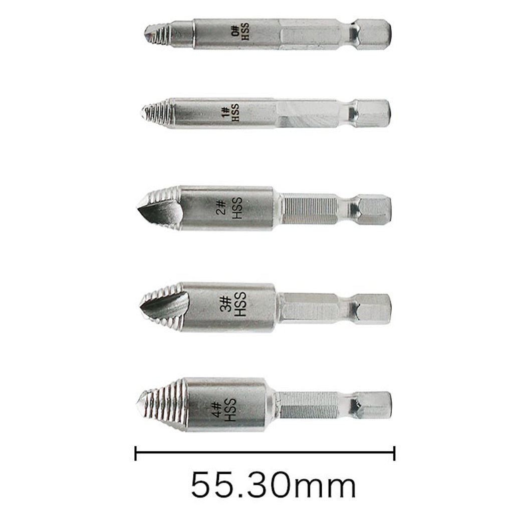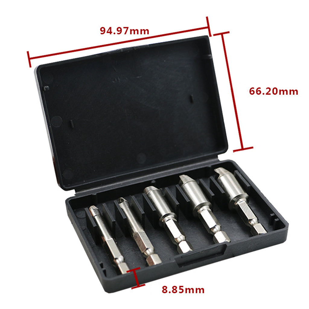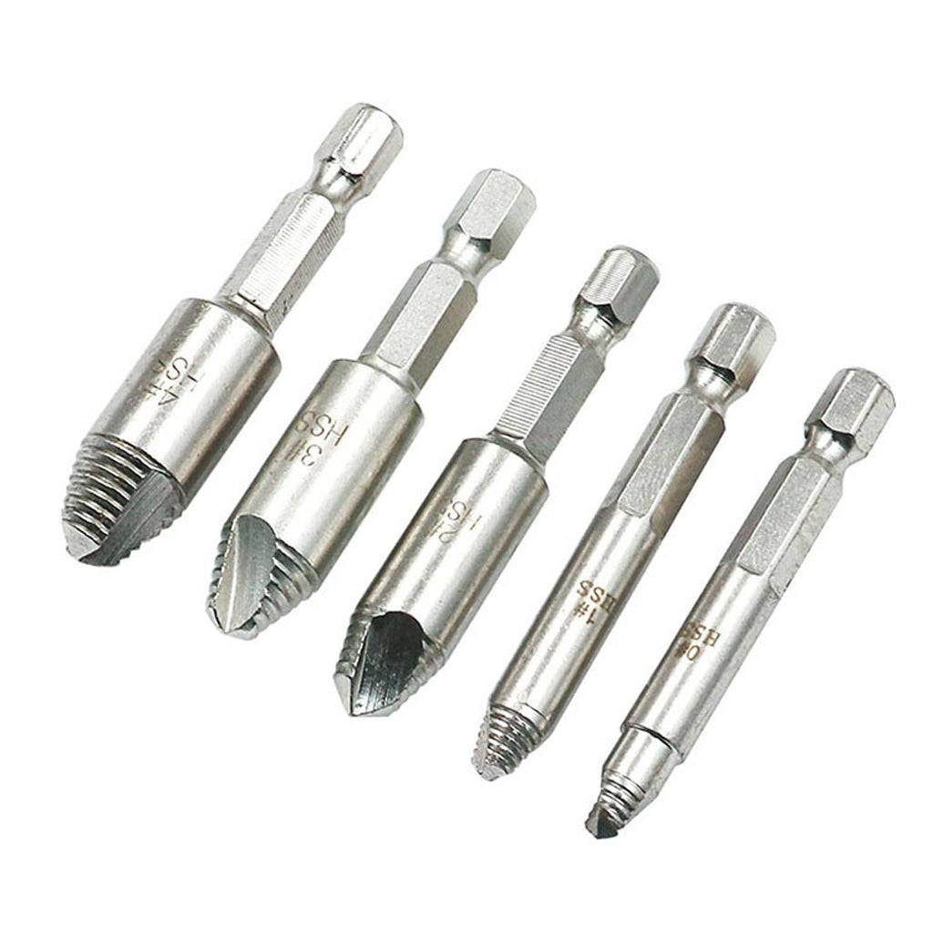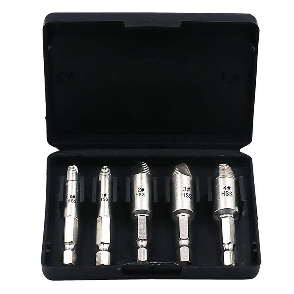 5 Piece Broken Stripped Screw Extractor Bolt Remover Drill Bit With Box
