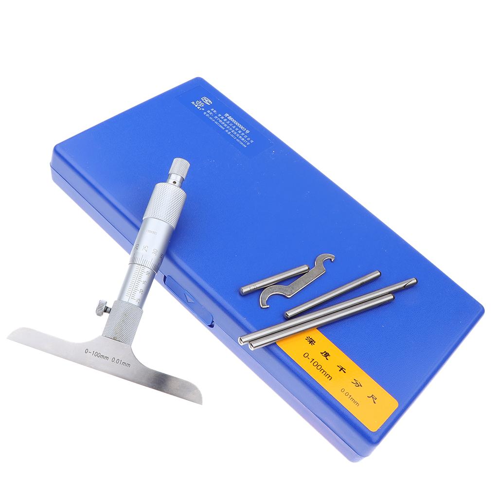 Depth Micrometer Gauge Set With 6 Rods Measurement Caliper Tool 0-4inch