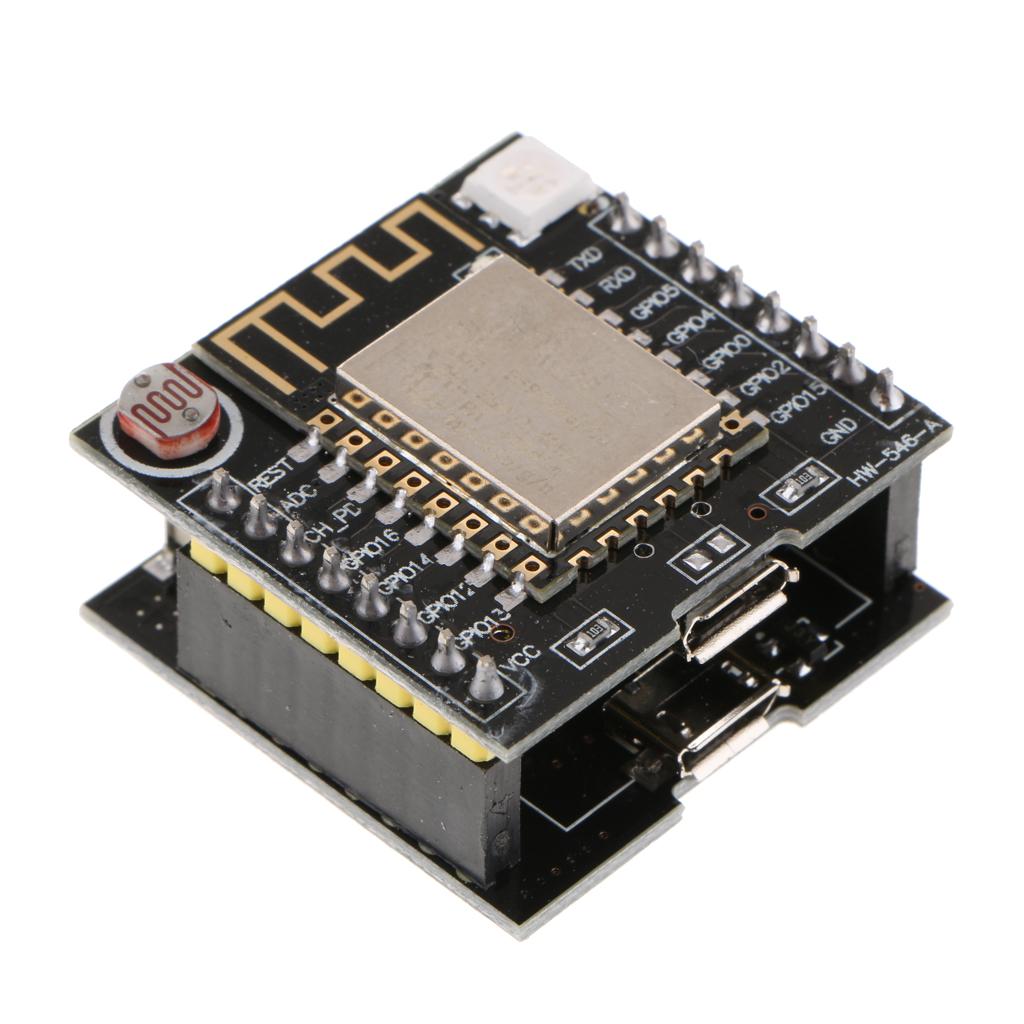The ESP-12 module is one of the most complete module in the ESP family. It allows you to use the biggest amount of pins of all of them. You can program this module to work stand alone with the Arduino IDE or with LUA as NodeMCU.