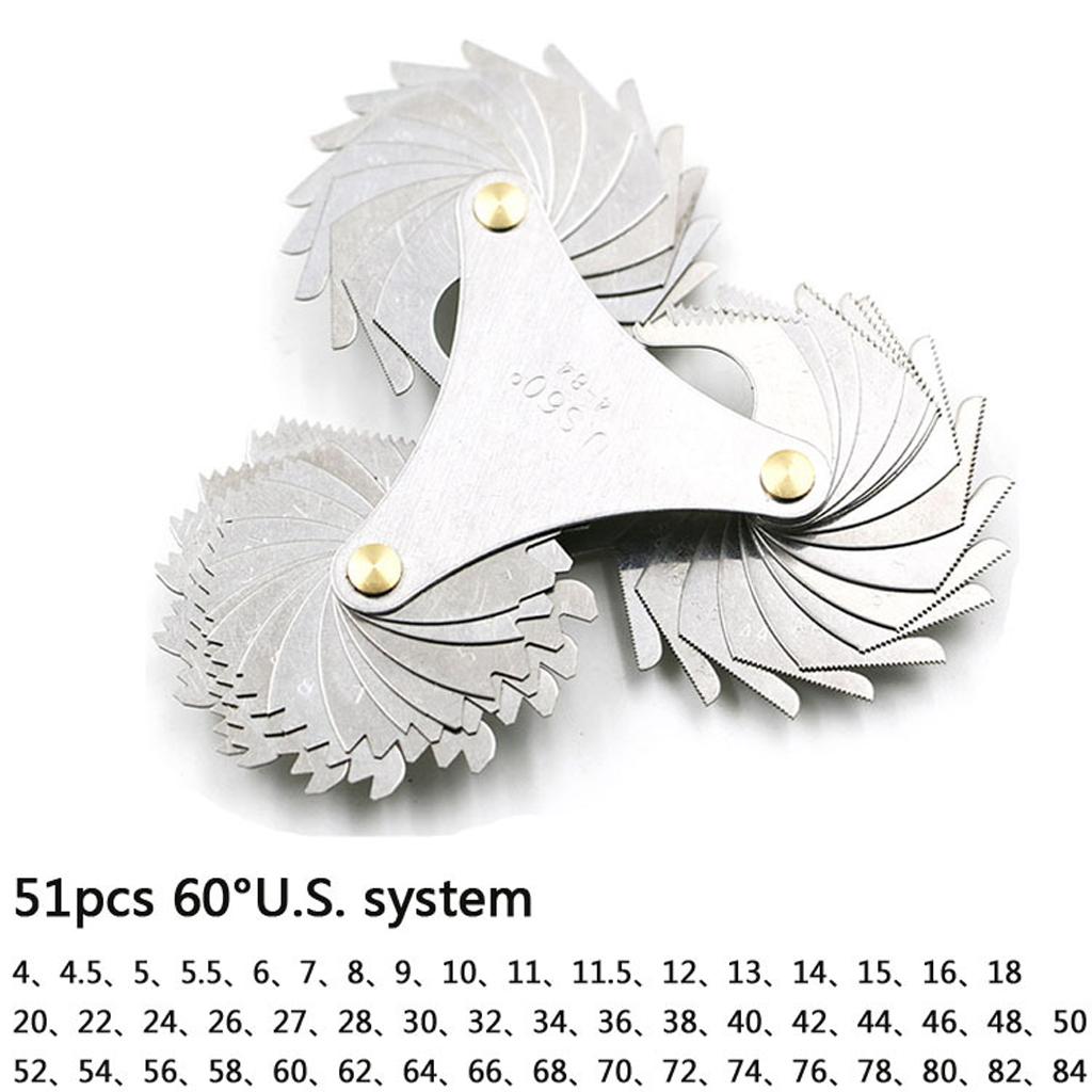 US 60° Thread gauge the degree of tooth-shaped model.Narrow-leaved designed to measure the external and internal threads - even in small holes.