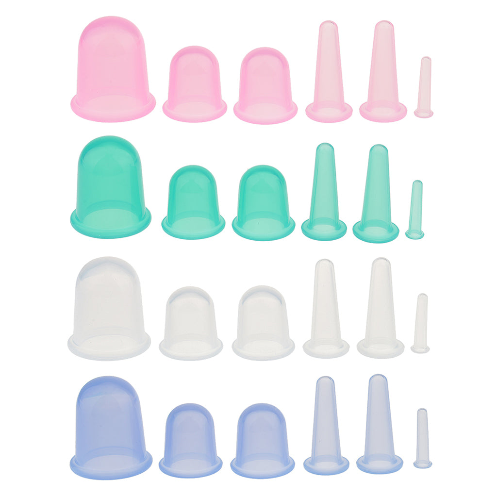 6 Piece Silicone Anti Cellulite Massage Vacuum Cupping Body Facial Cup Blue