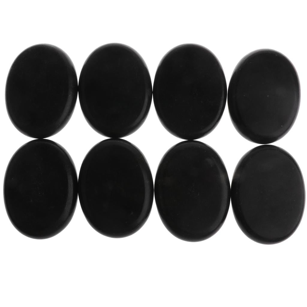 8 Piece Large Ovular Black Basalt Hot Stone Rock Massage Lava Natural Stones