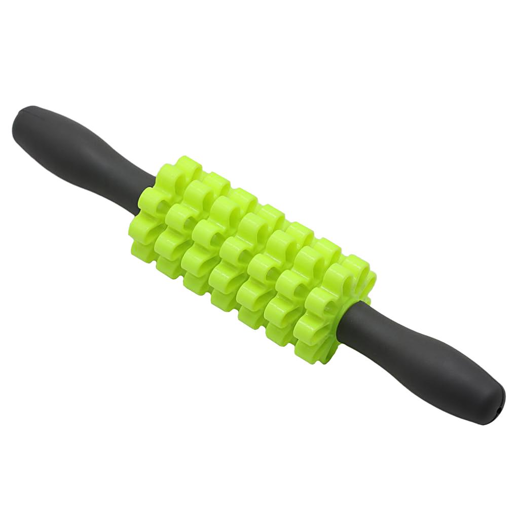 With the specifically constructed contours by simply rolling over the firm, raised and flexible blocks of rolling stick.