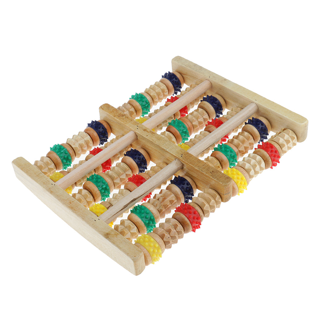 Wooden Dual Foot Massager Reflexology Foot Massage Roller Plantar Fasciitis Relief Acupressure Tool