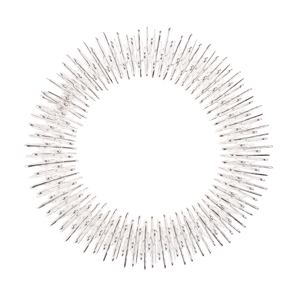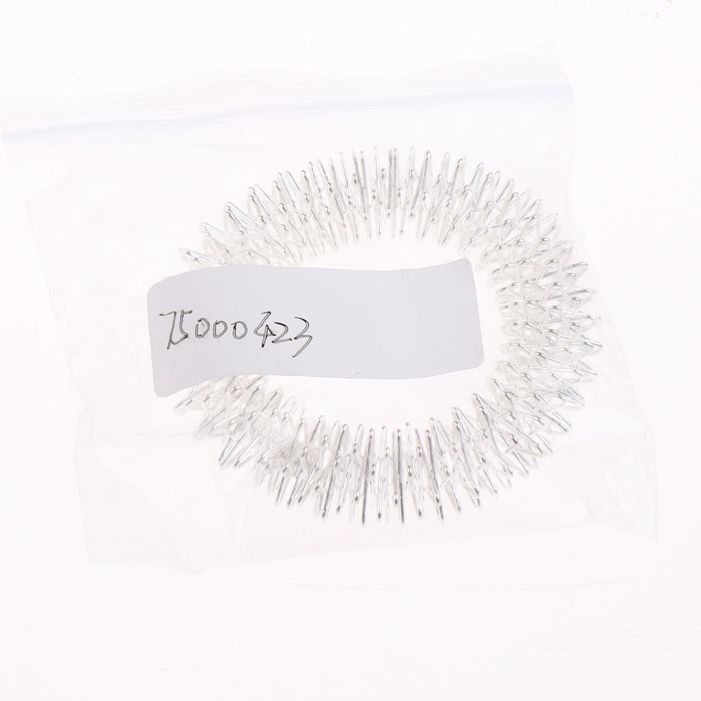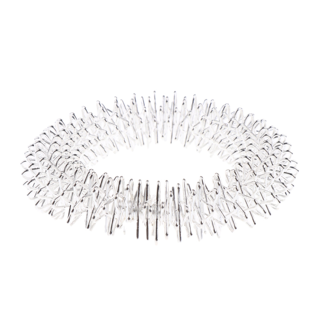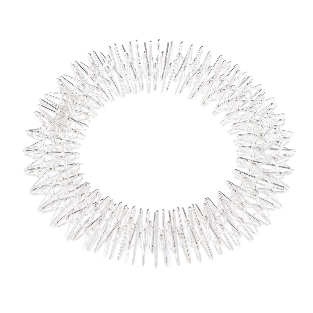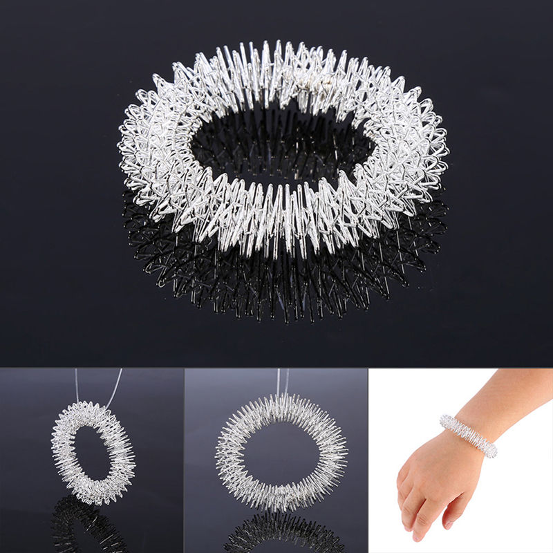 Acupressure Bracelet is a metal ring made of little triangular shaped points that stimulate your hand.