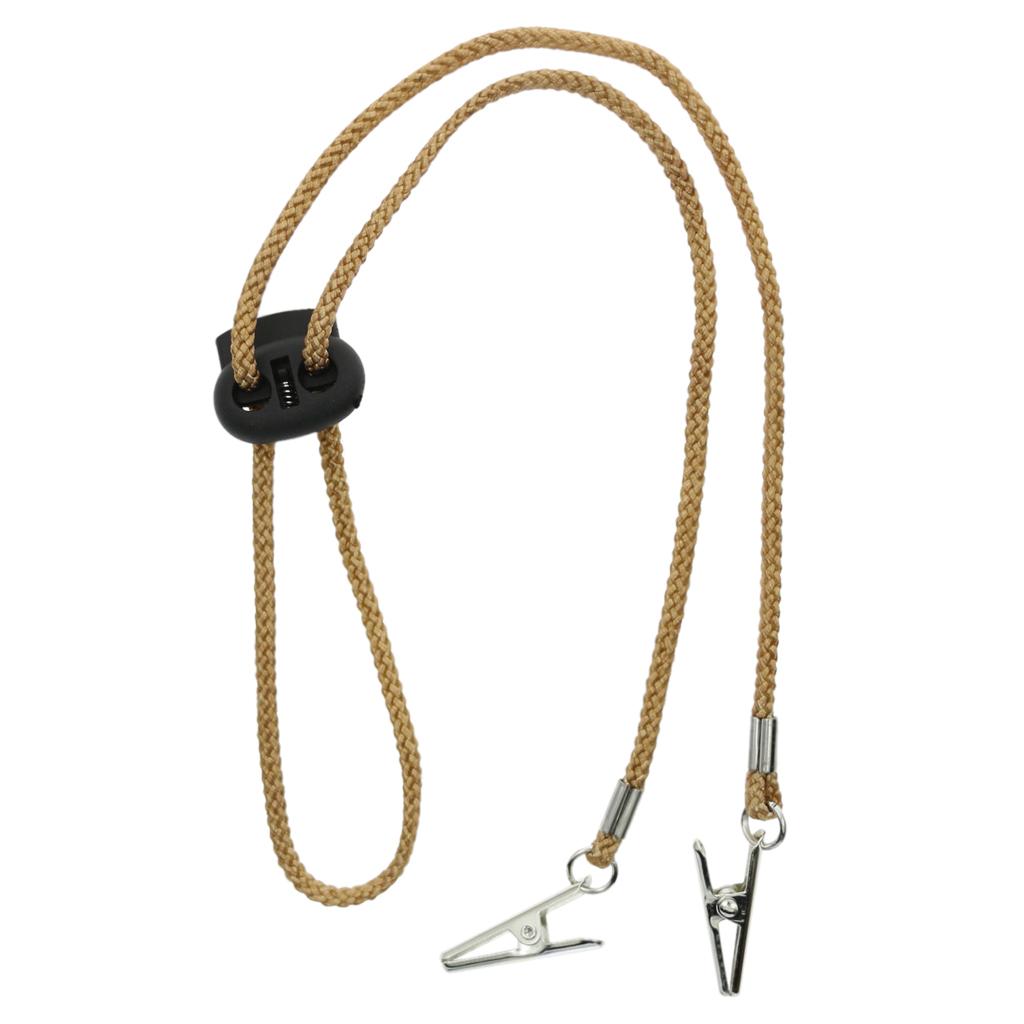 Simply wear the chain around your neck and clip each end to your napkin.The length can be adjusted.