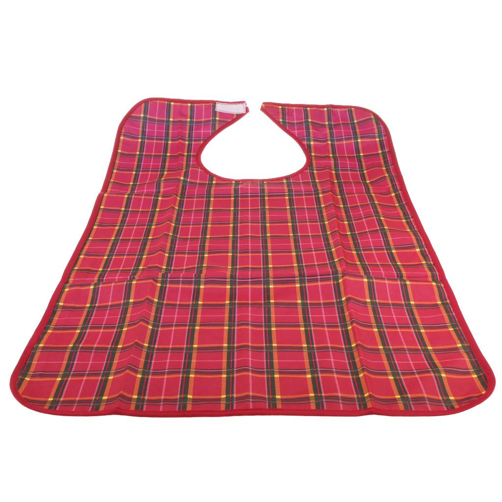Waterproof Adults Elder Mealtime Cloth Protector Disability Aid Bib Red