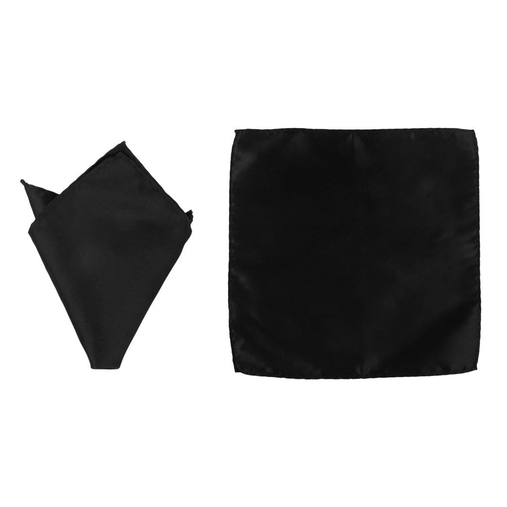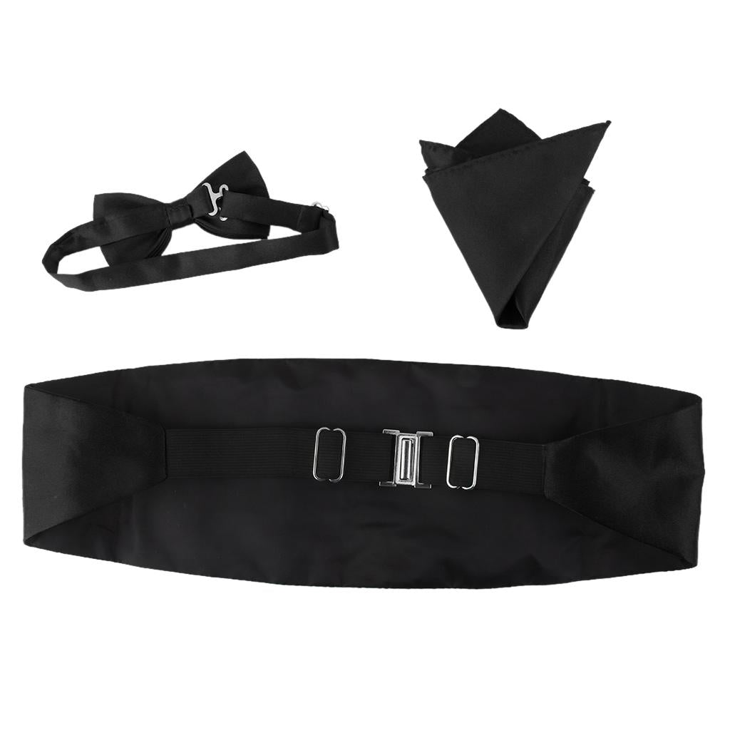 3pcs Men's Satin Bow Tie Cummerbund Hanky Handkerchief Black