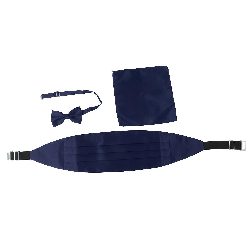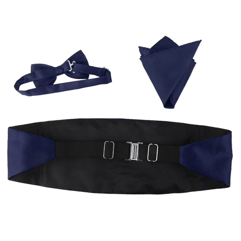 3pcs Men's Satin Bow Tie Cummerbund Hanky Handkerchief Deep Blue