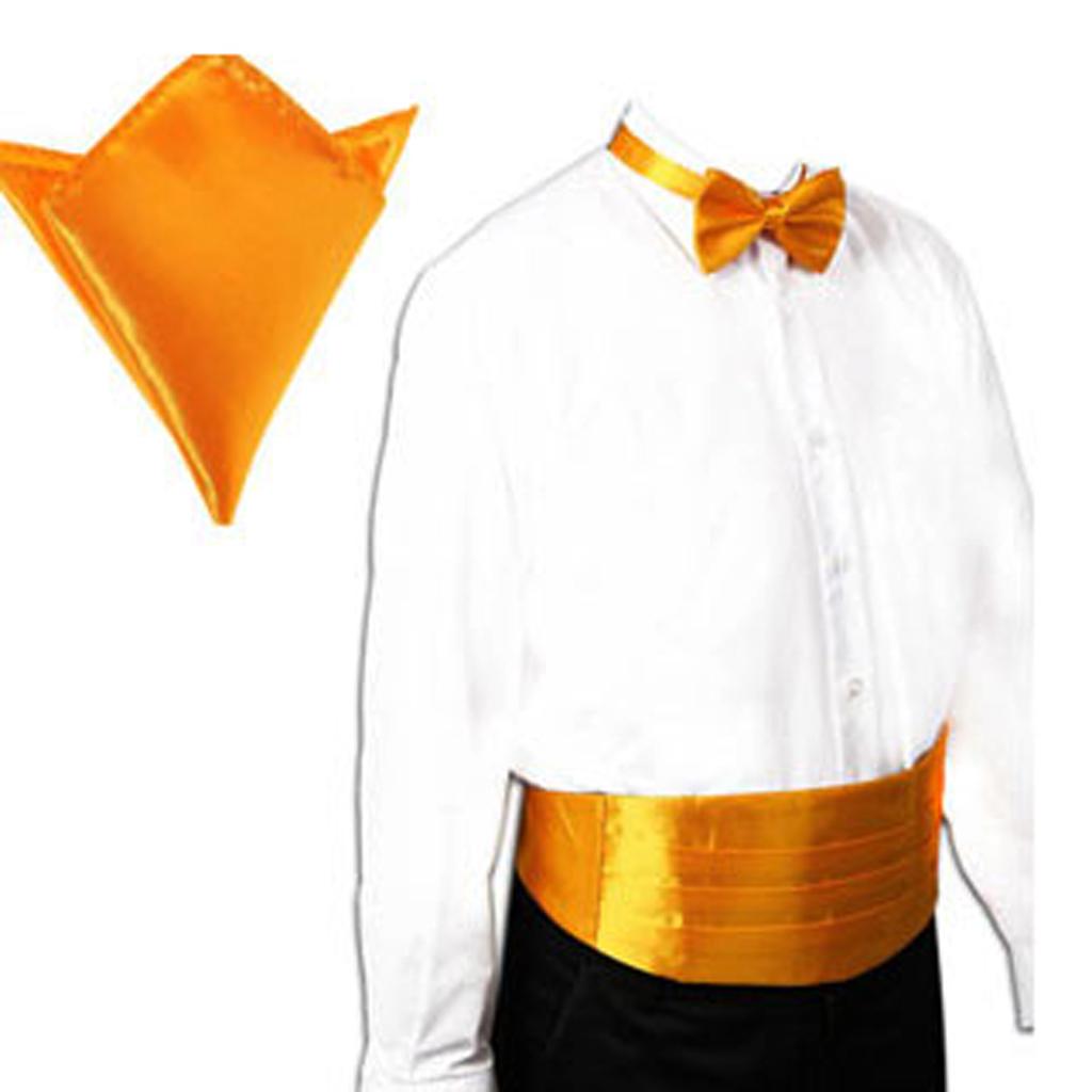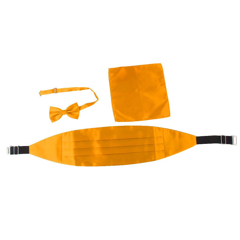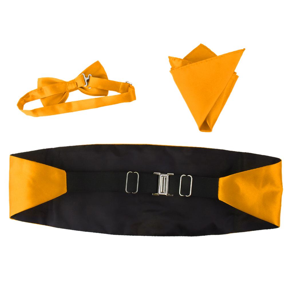 3pcs Men's Satin Bow Tie Cummerbund Hanky Handkerchief Gold Yellow