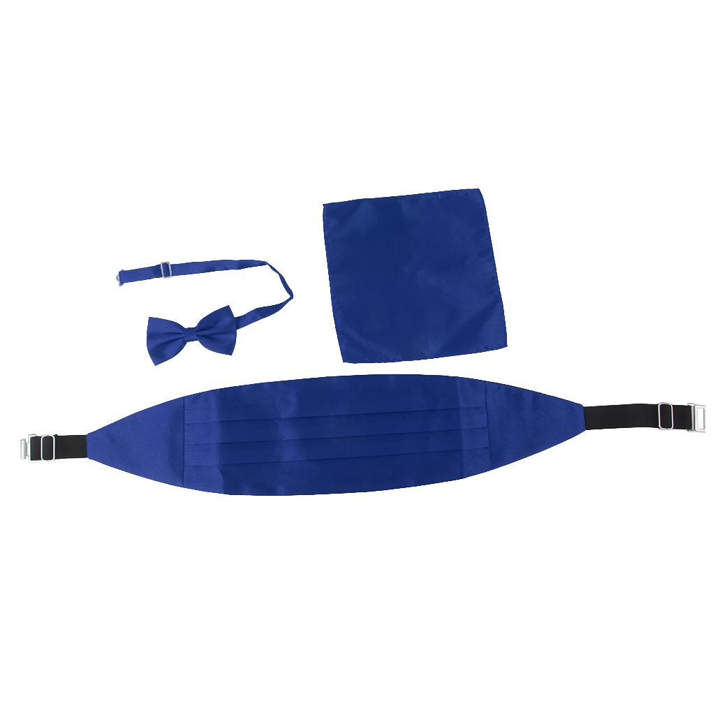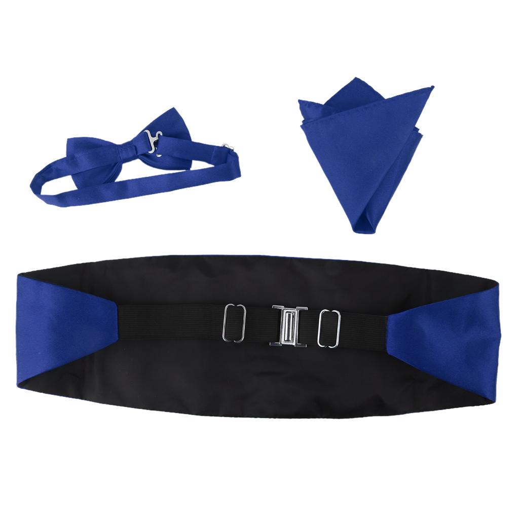 3pcs Men's Satin Bow Tie Cummerbund Hanky Handkerchief Royal Blue