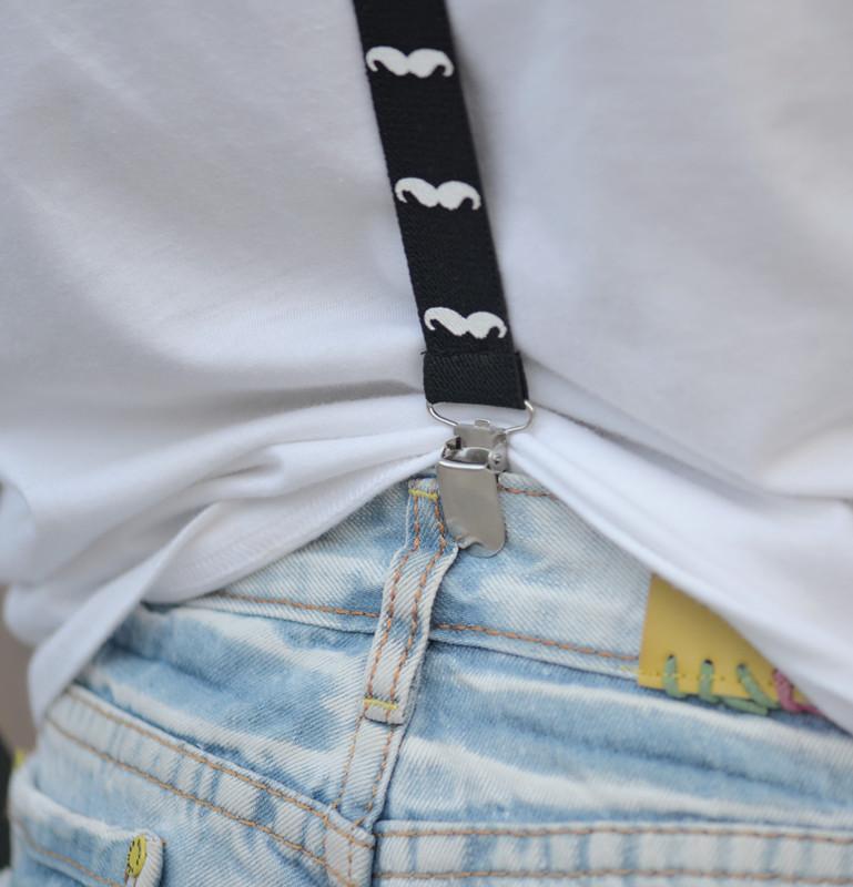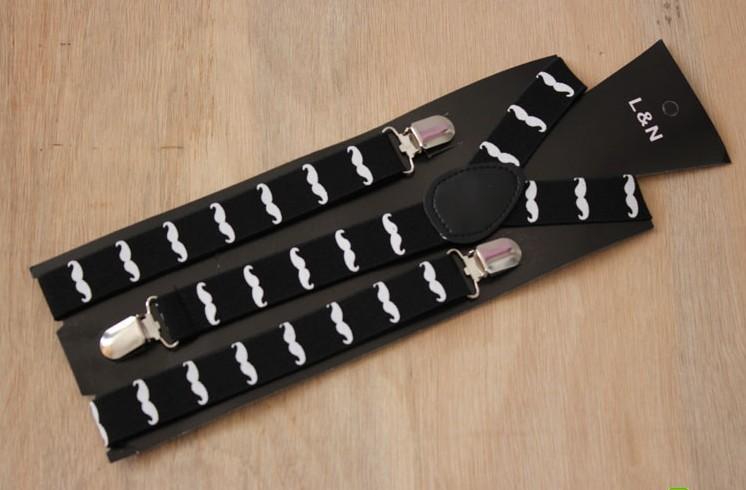 Adult Unisex Clip-on Braces Elastic Y-back Suspender w/White Mustache Beard Patterns Black