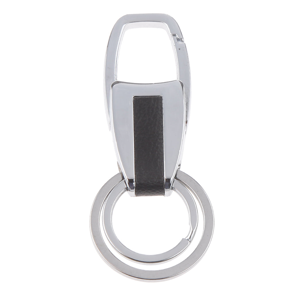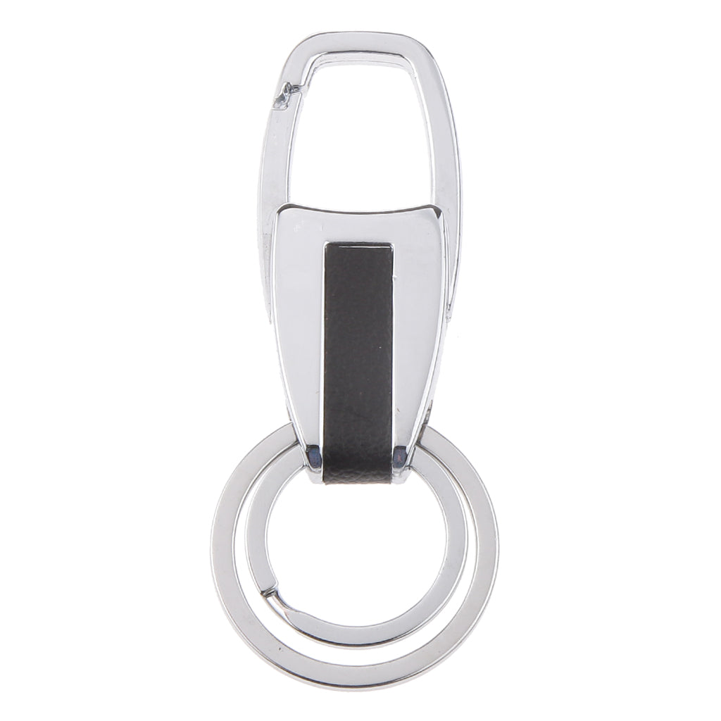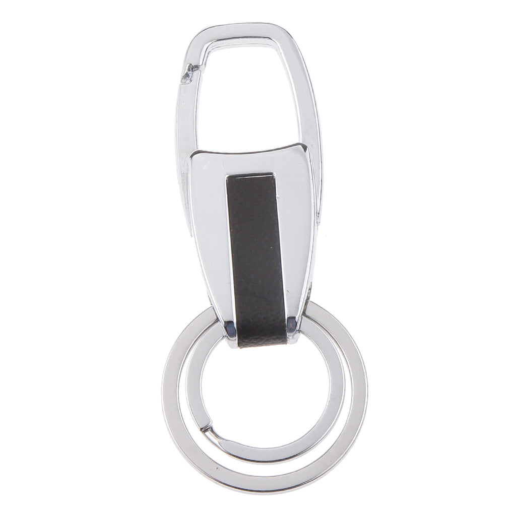 Alloy Metal Car Double Loop Waist Hanging Keeper Key Ring Steel Color