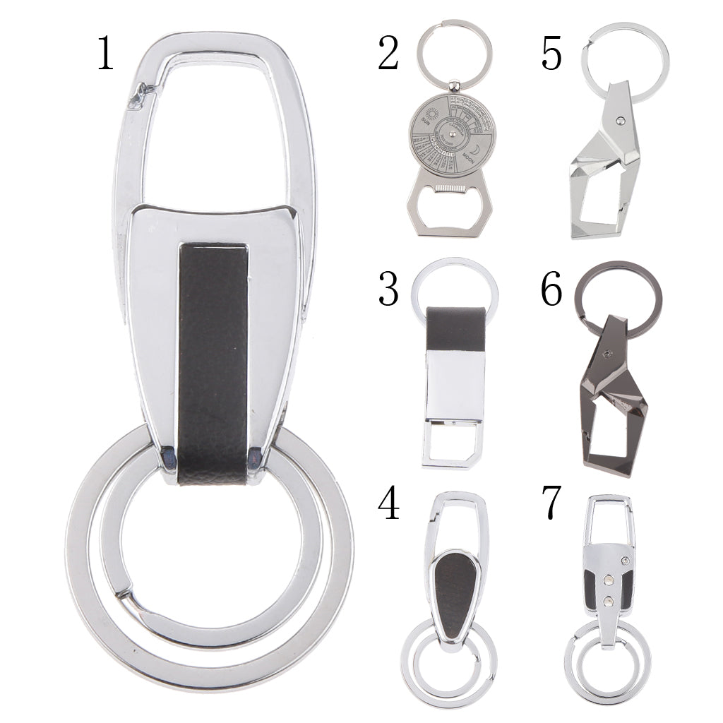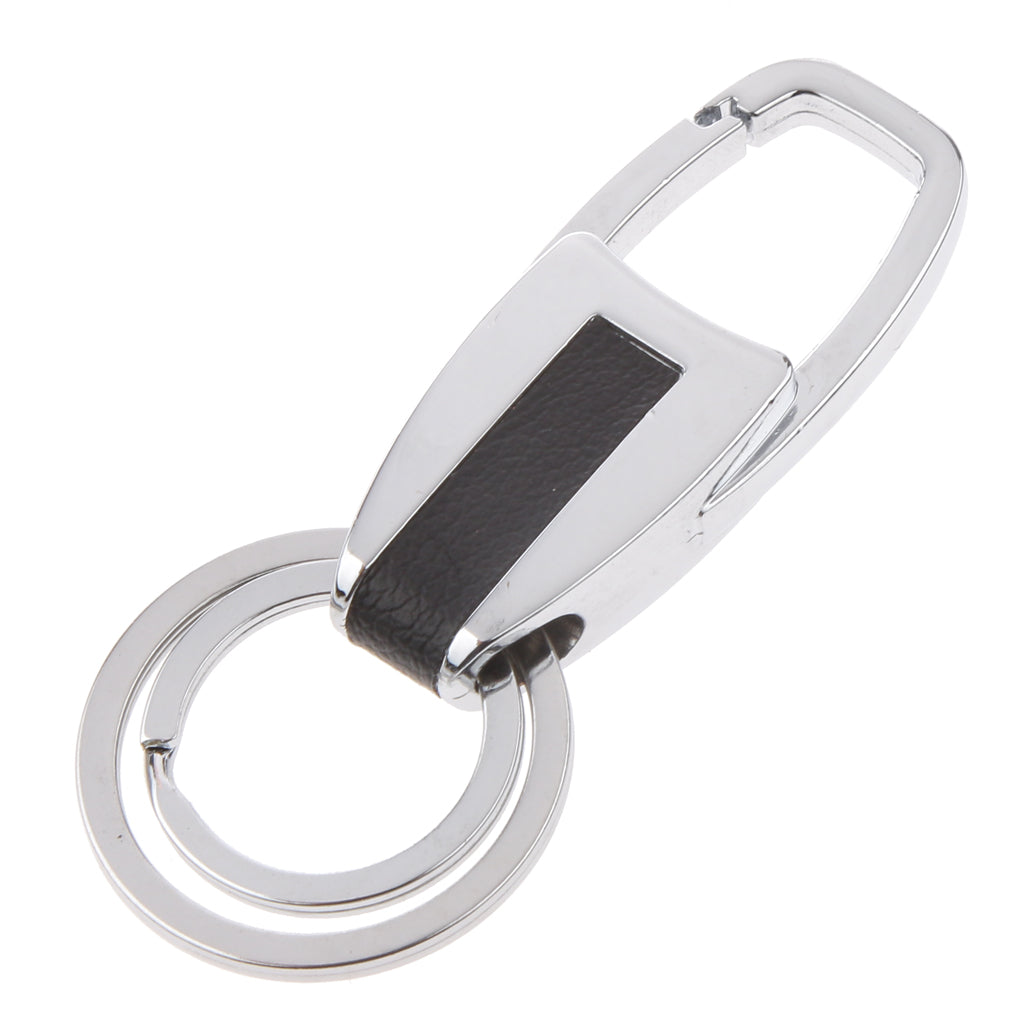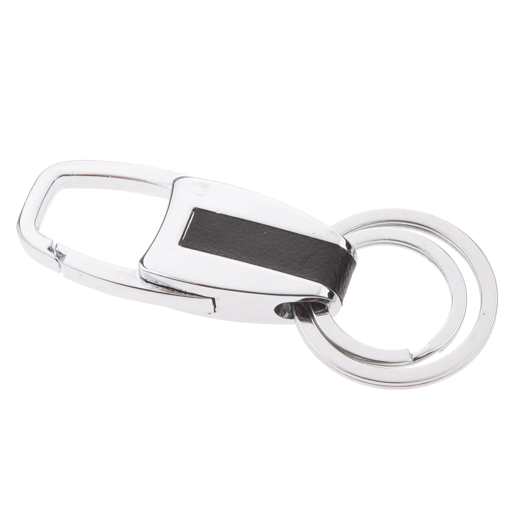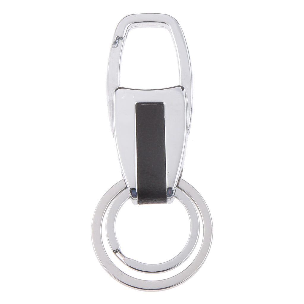 Alloy Metal Car Double Loop Waist Hanging Keeper Key Ring Steel Color