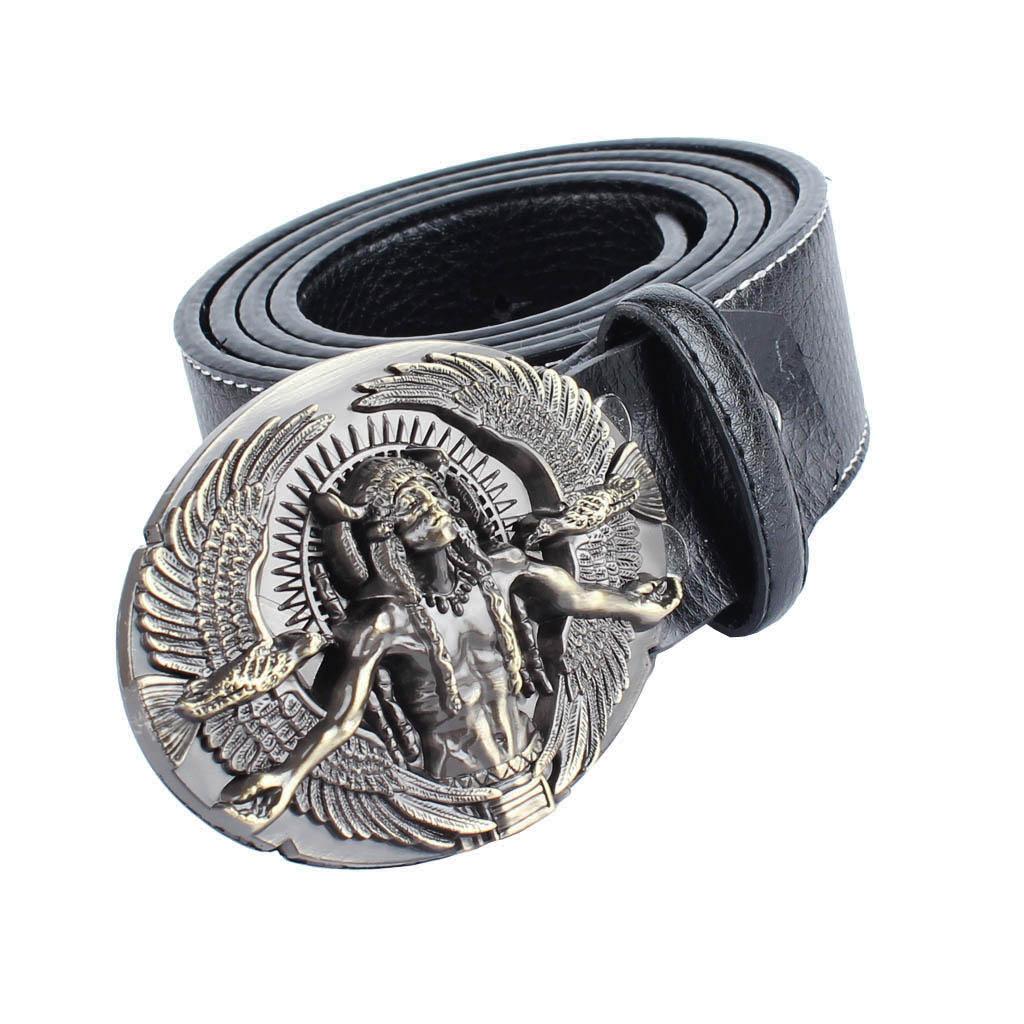 Features Native American Indian Chief & Eagle Oval Belt Buckle