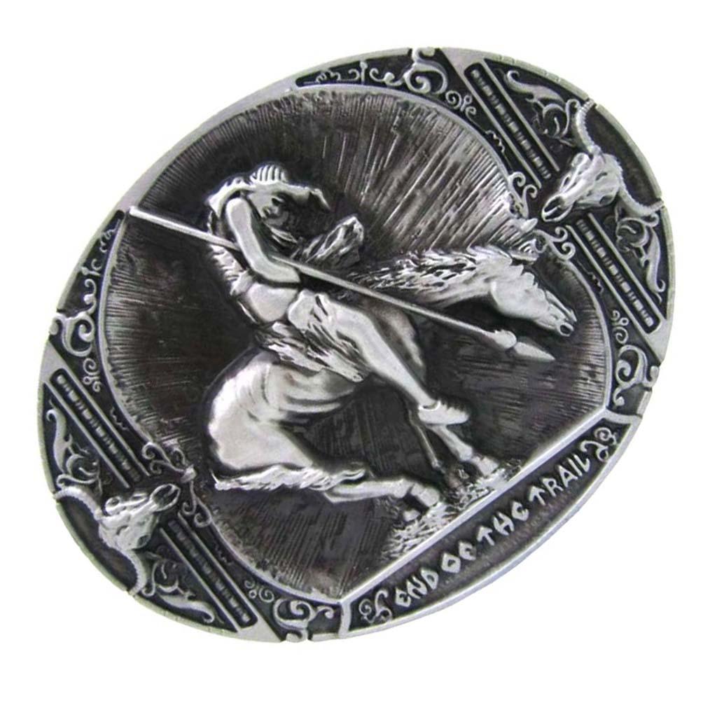 Antique Silver Tone Rodeo Indian & Knight & Horns Metal belt buckle