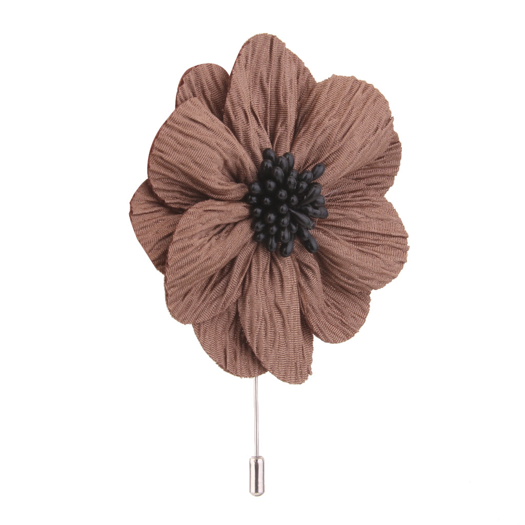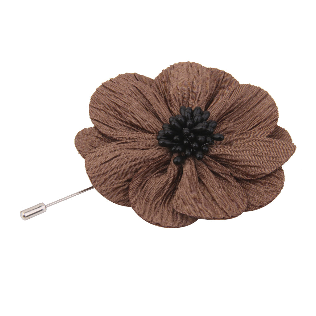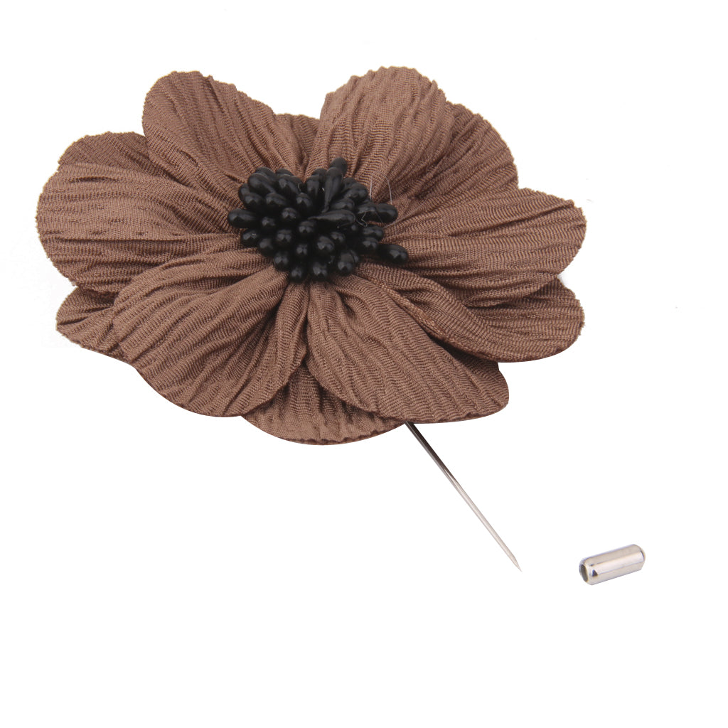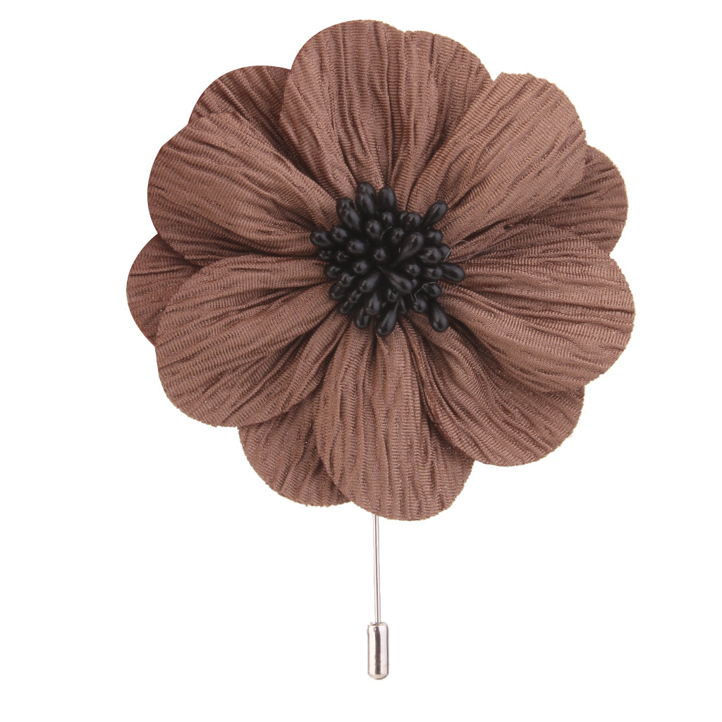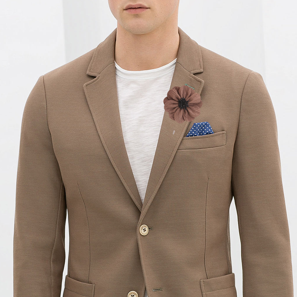 Handmade Flax Flower Lapel Men Brooch Boutonniere Tuxedo Pin - Khaki