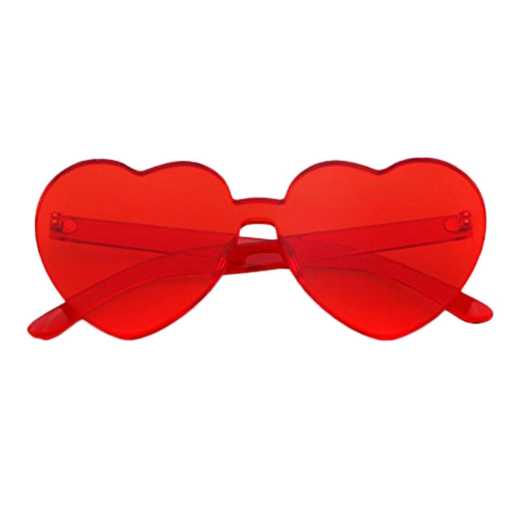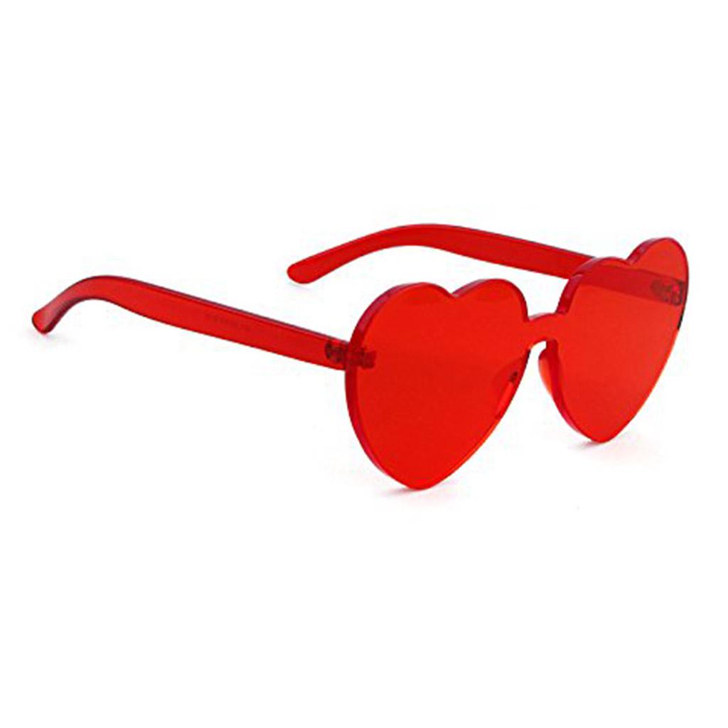 Heart Shape Rimless SunglassesTransparent Candy Color Eyewear Red