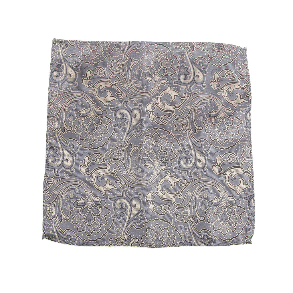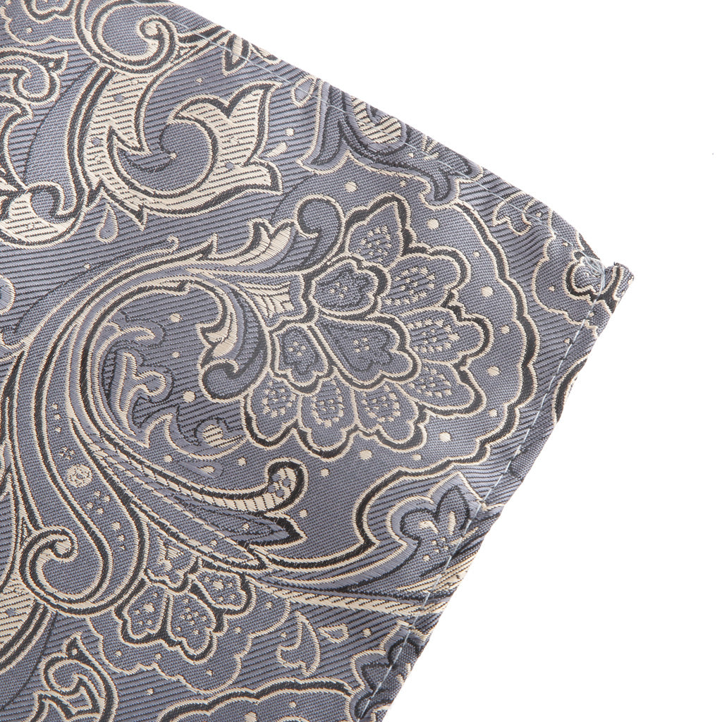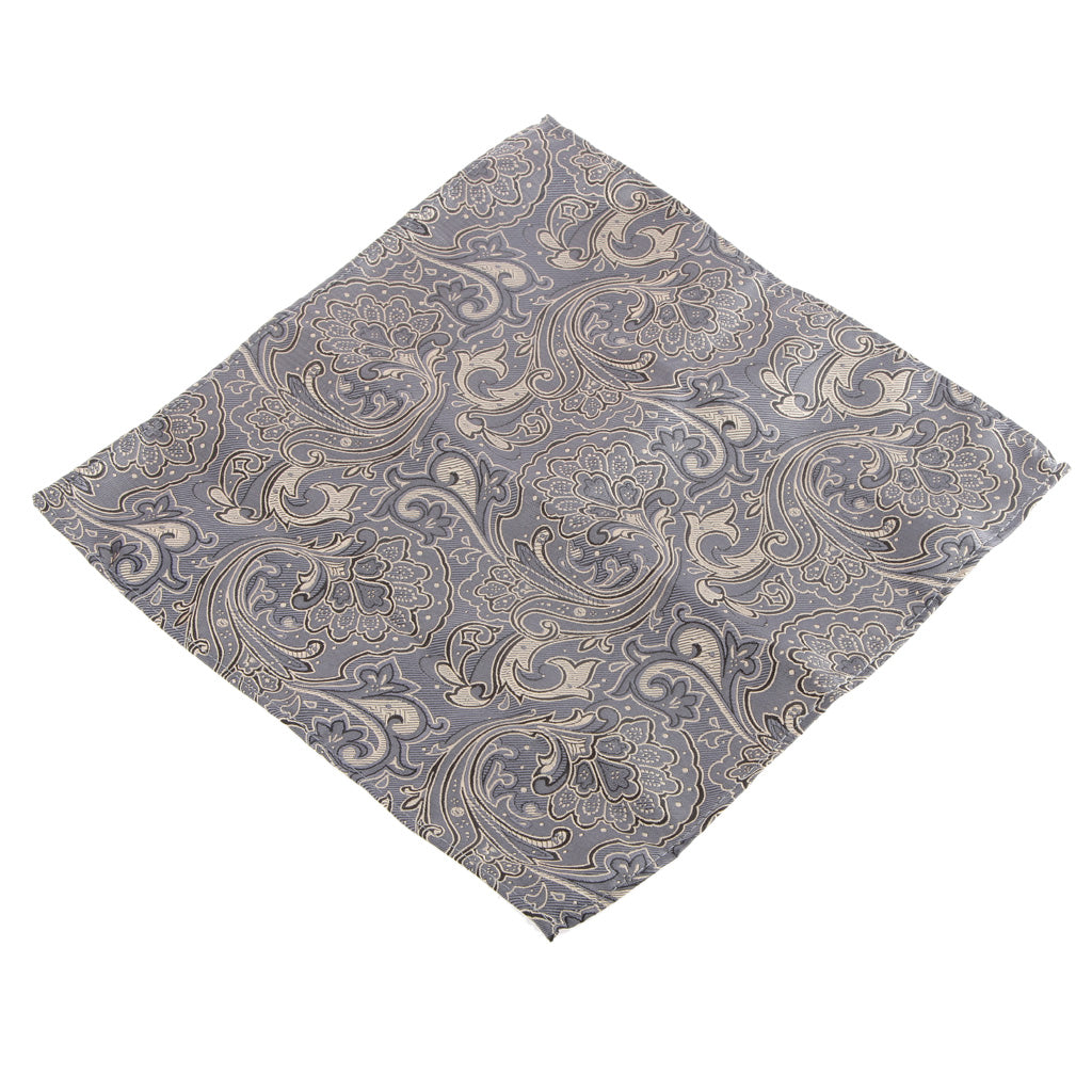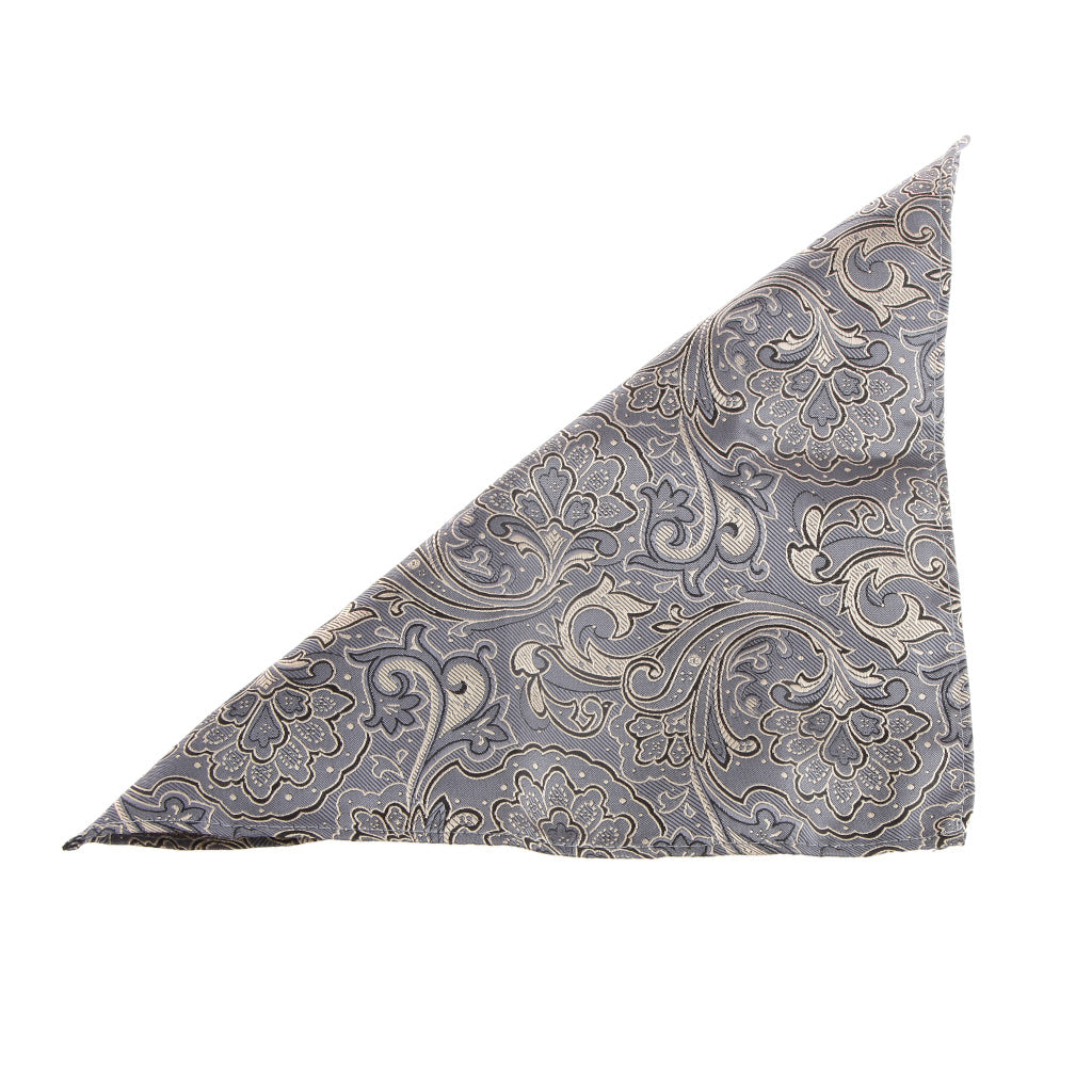 Men Peiris Pattern Pocket Square Hankie Hanky Handkerchief Gray and Gold