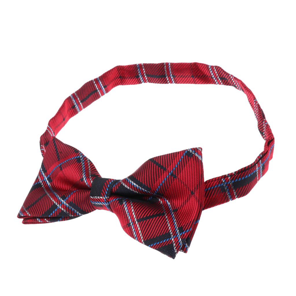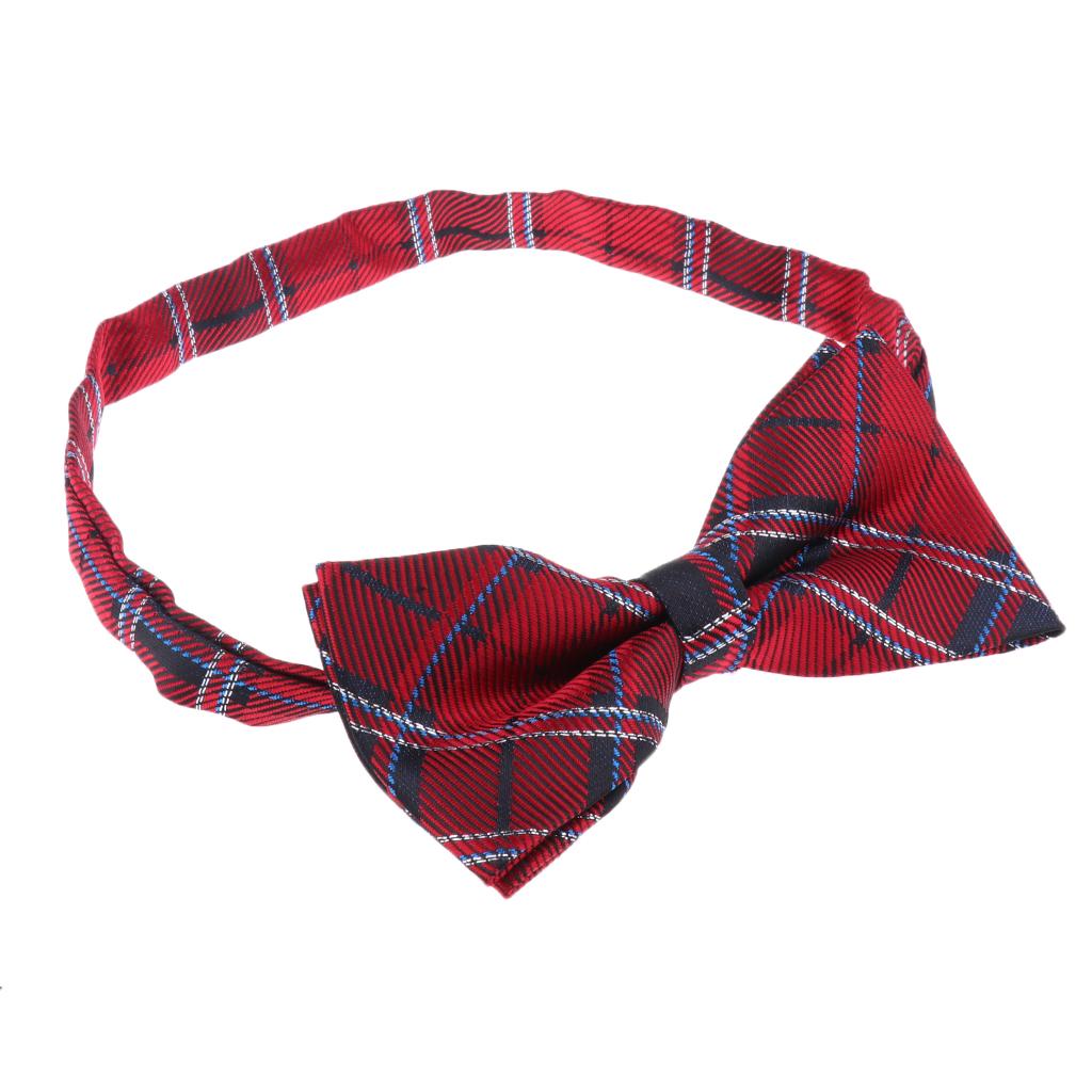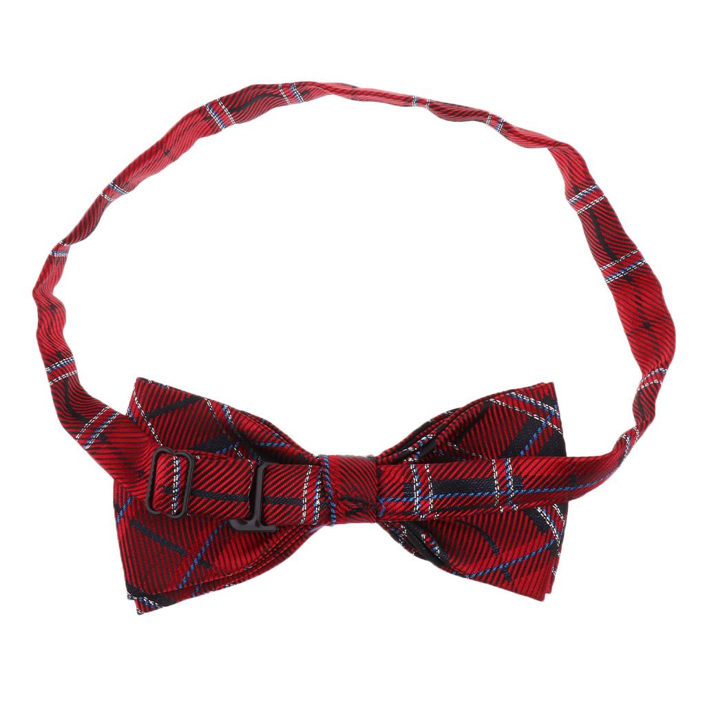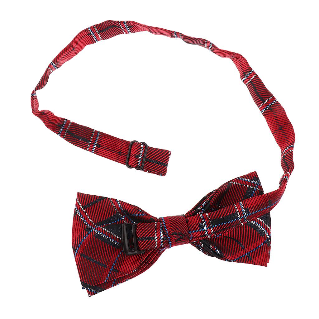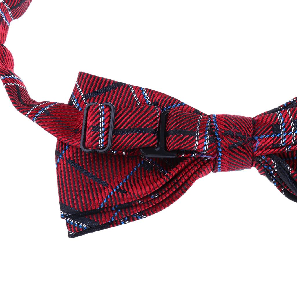 Men Tuxedo Bowtie Pre-tied Neckties with Adjustable Strap Red Silver Stripss