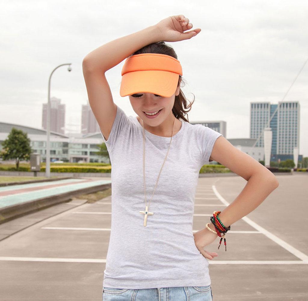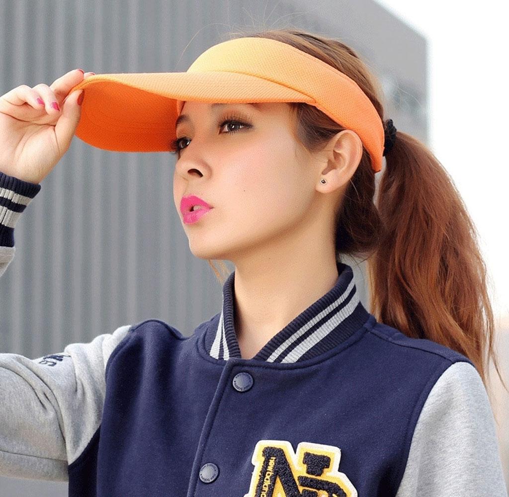 Men Women Summer Fashion Sun Protective Outdoor Sports Golf Tennis Wide Brim Beach Sun Hat Cap Orange