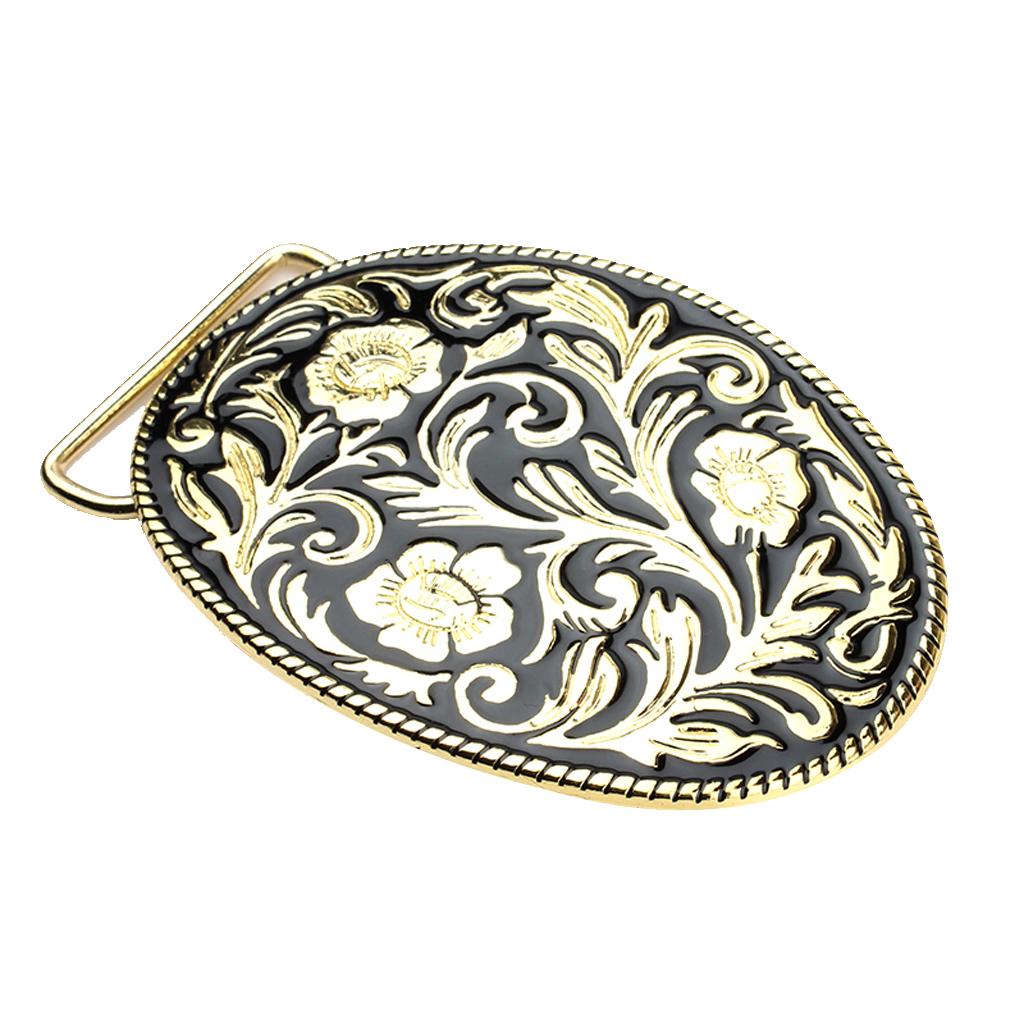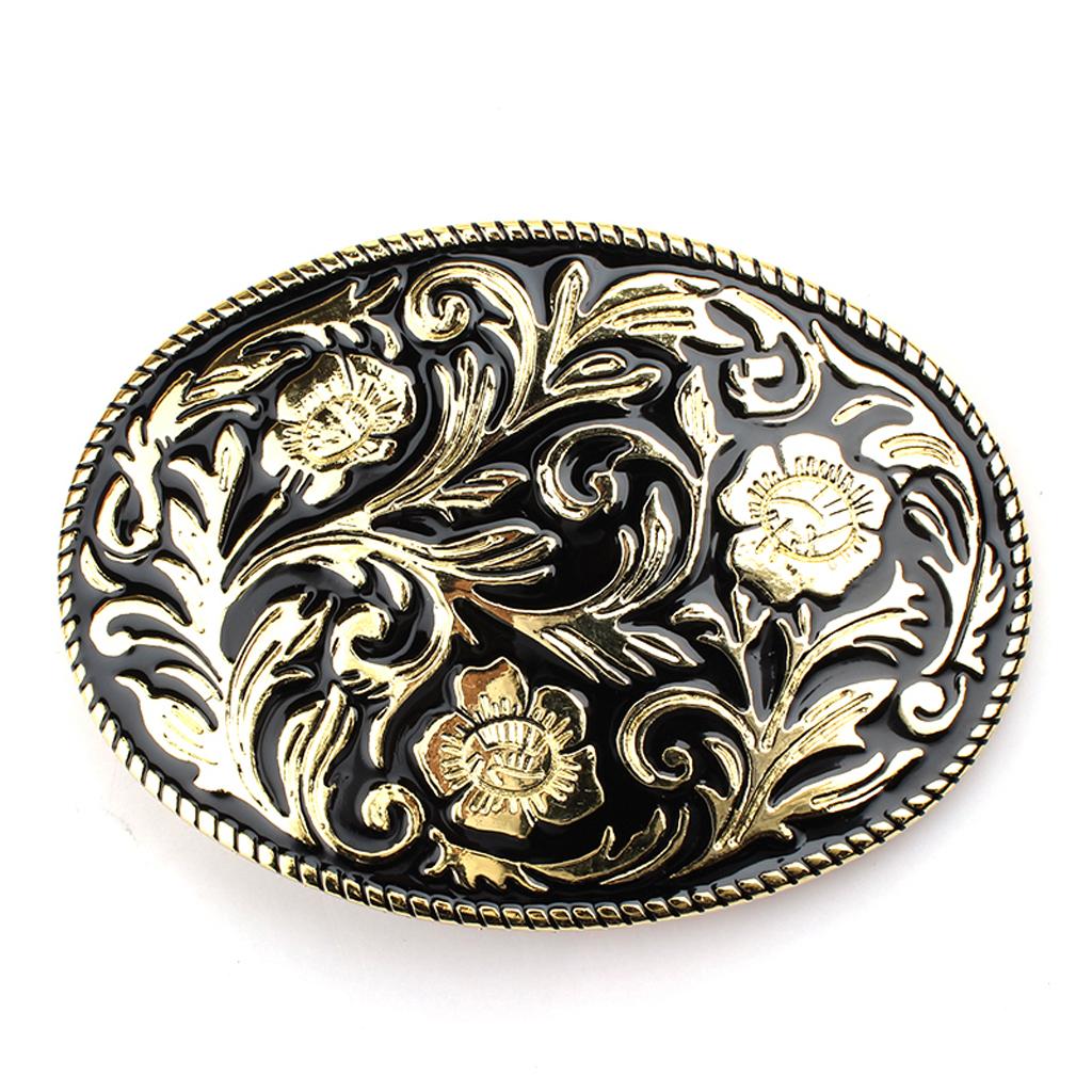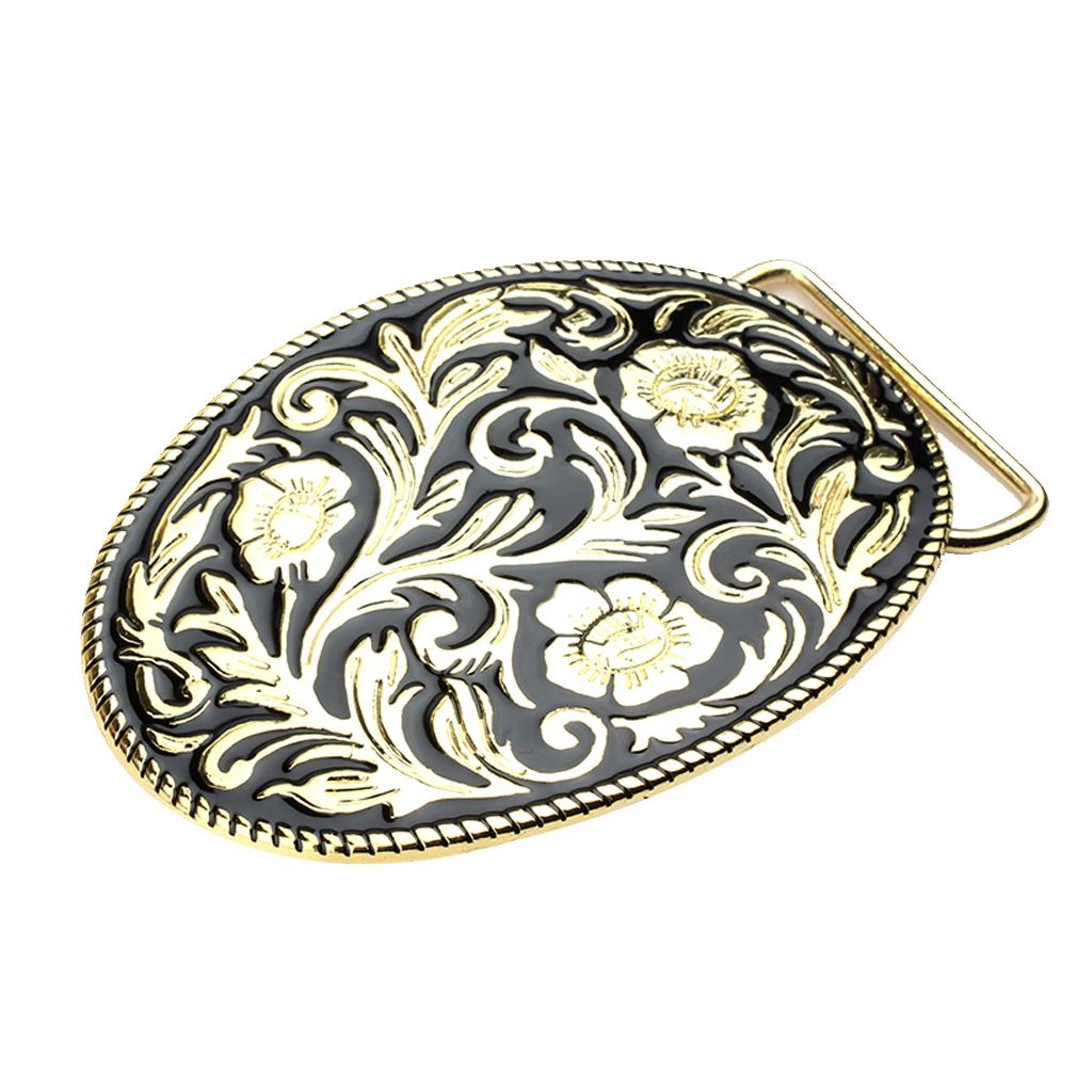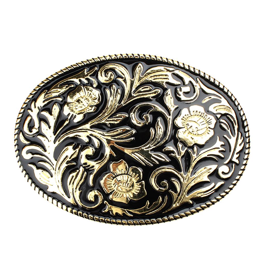 Men's Ancient Enbossed Golden Floral Pattern Art Design Western Cowboy Belt Buckle