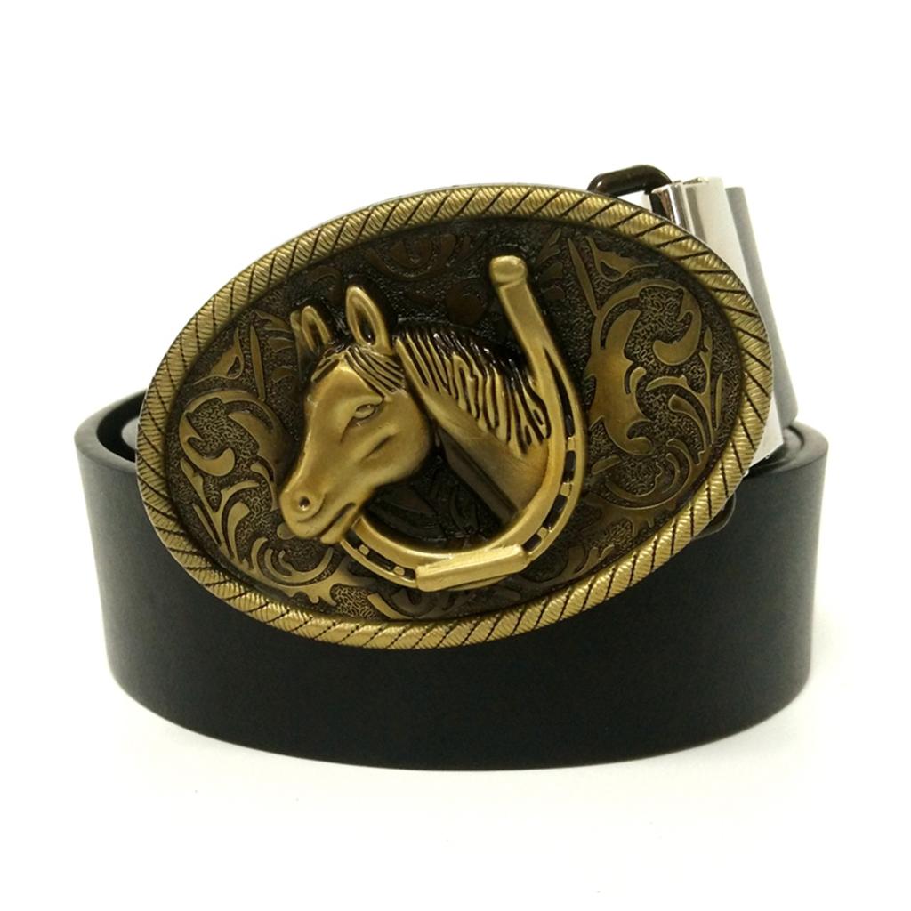 Mens Arabesque Horse Belt Buckle Rodeo Western Cowboy Leather Belt Gold