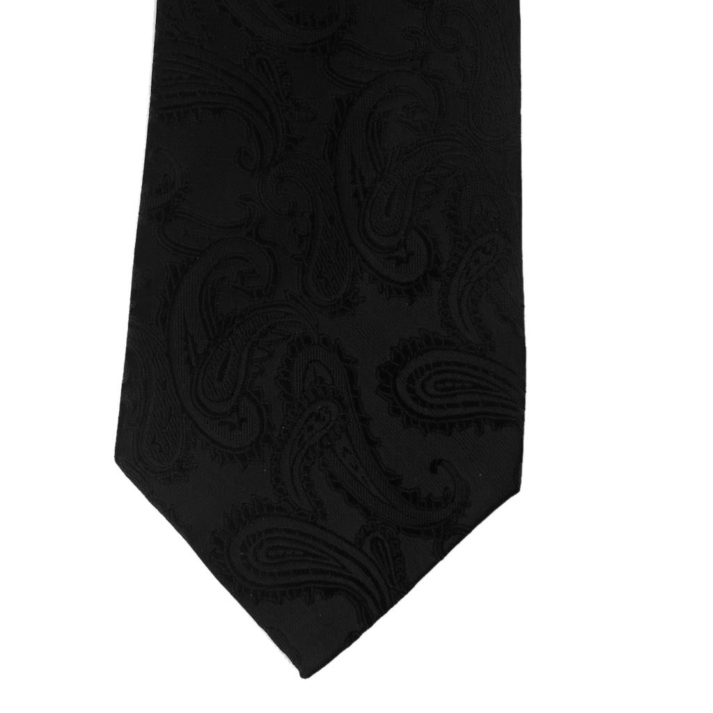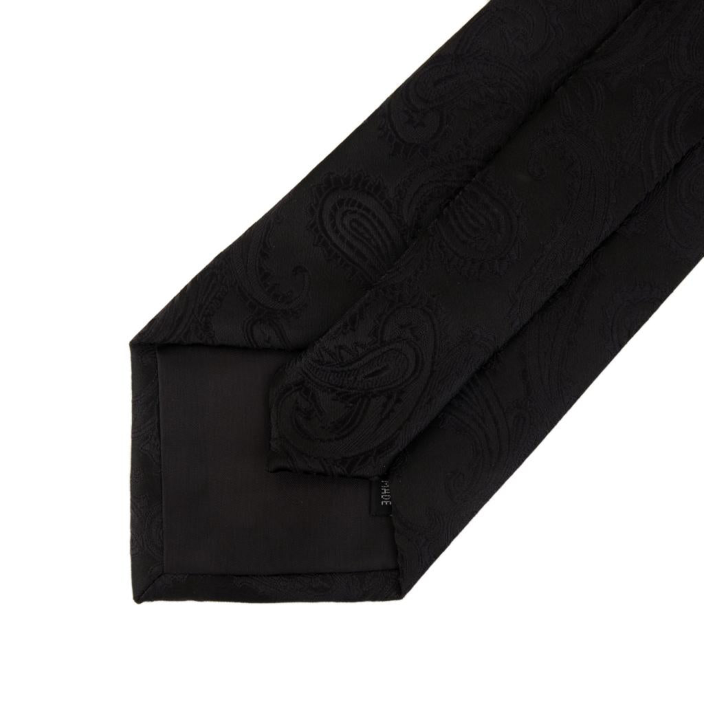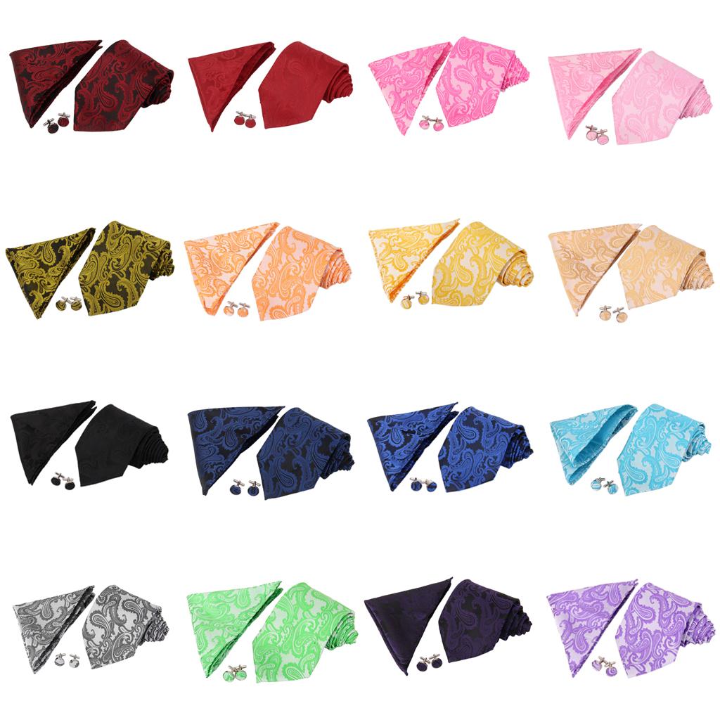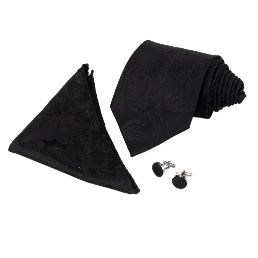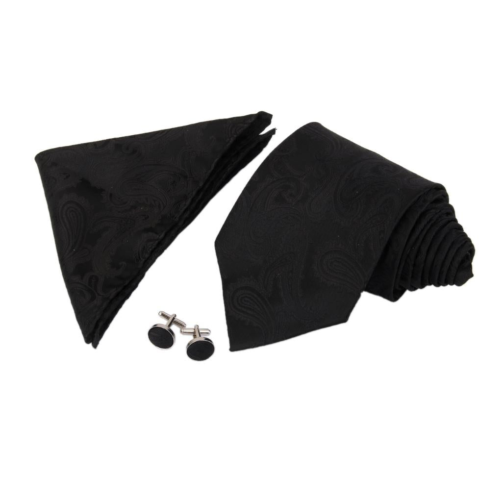Mens Jacquard Neck Tie Hanky Cufflinks set Wedding Neckwear Black