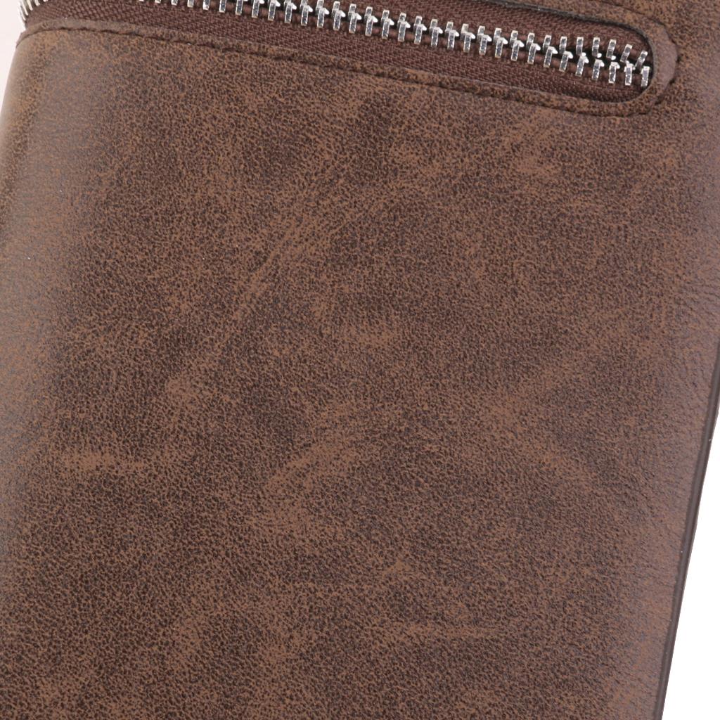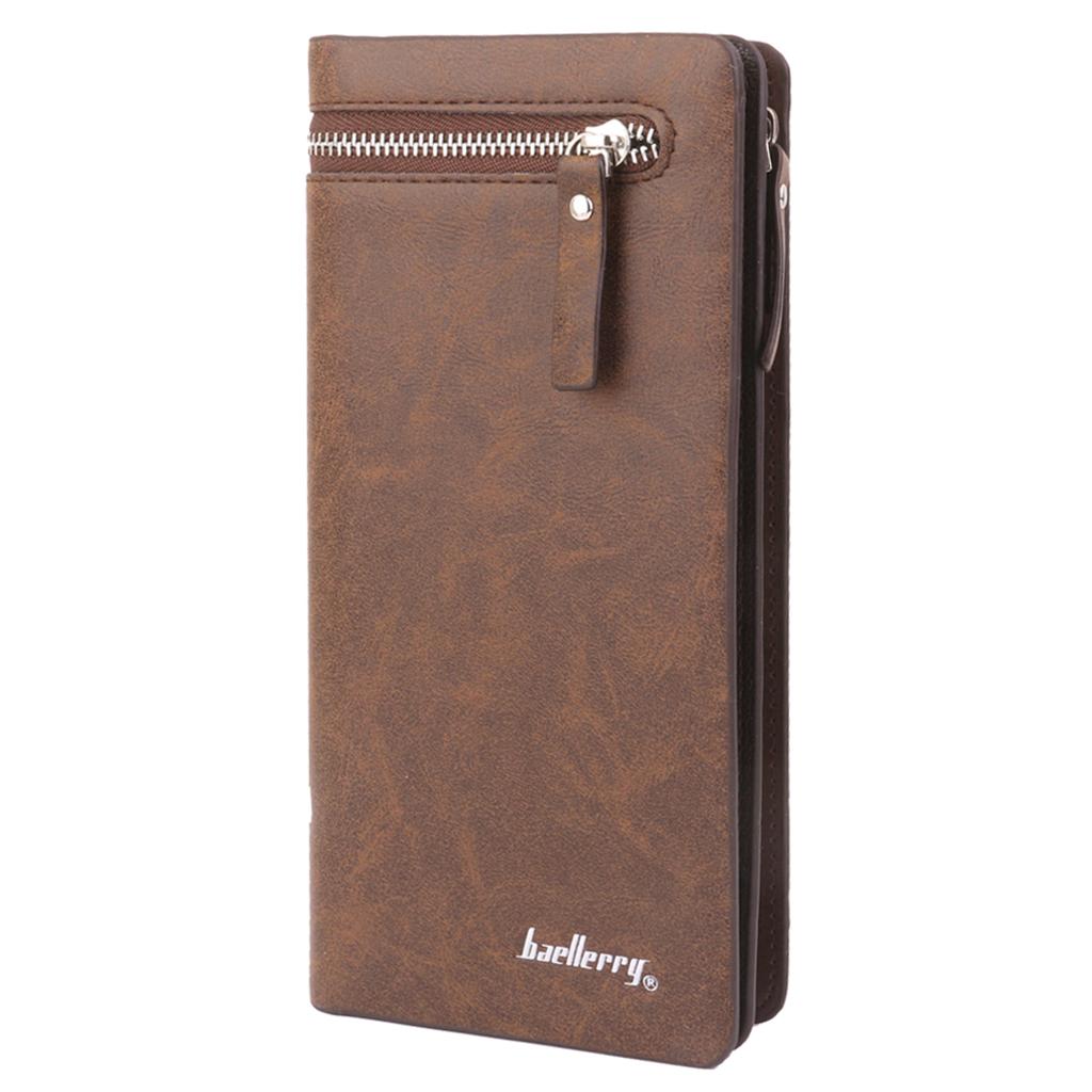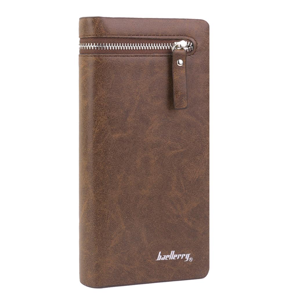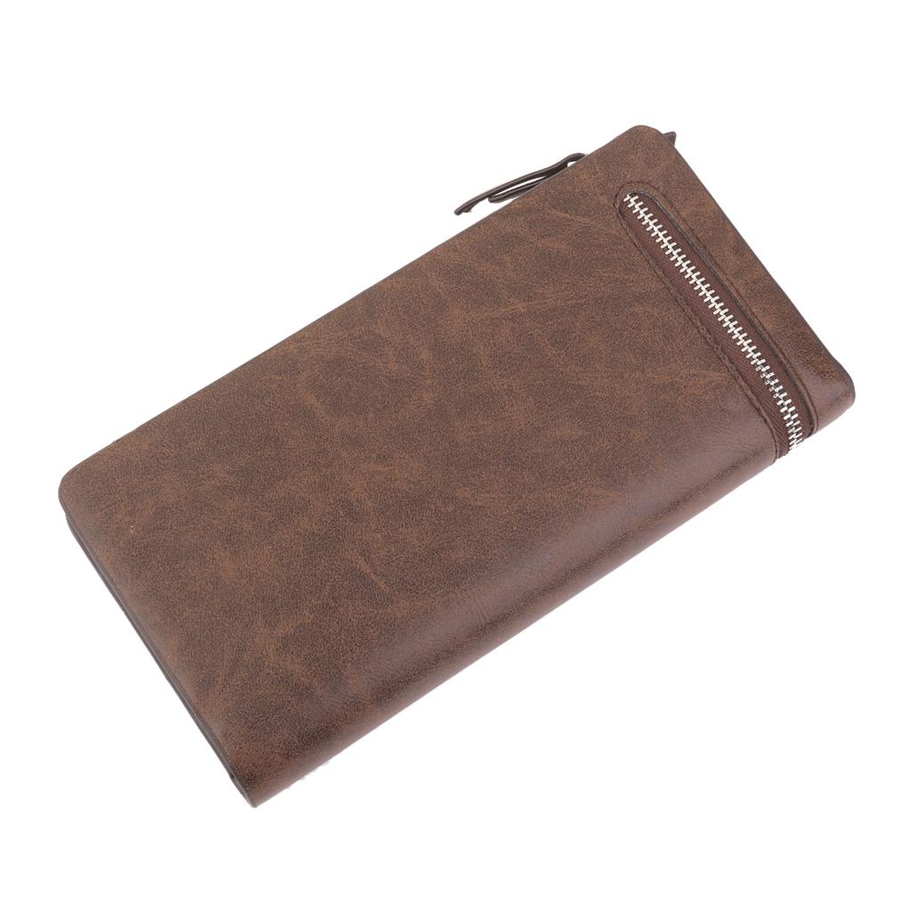 Men's PU Card Holder Zip Wallet Purse Billfold Clutch Checkbook Light Brown